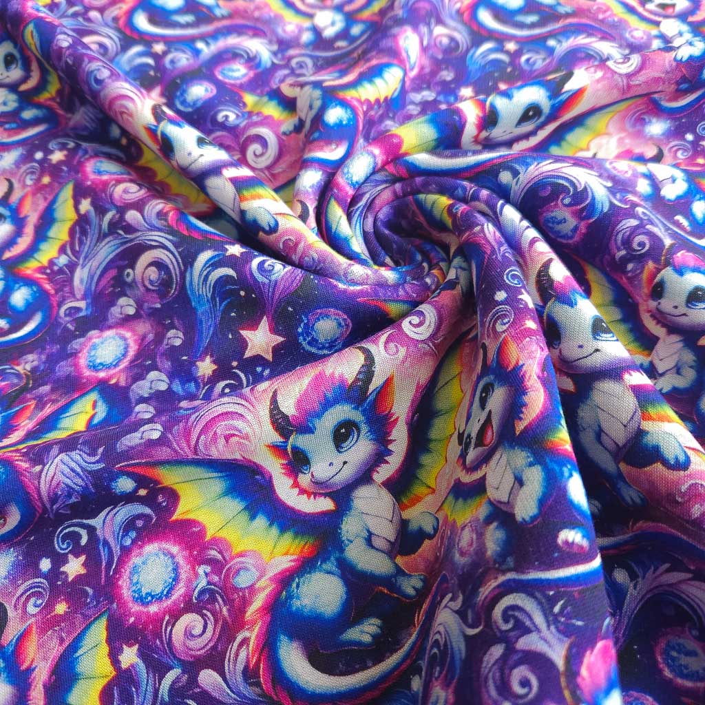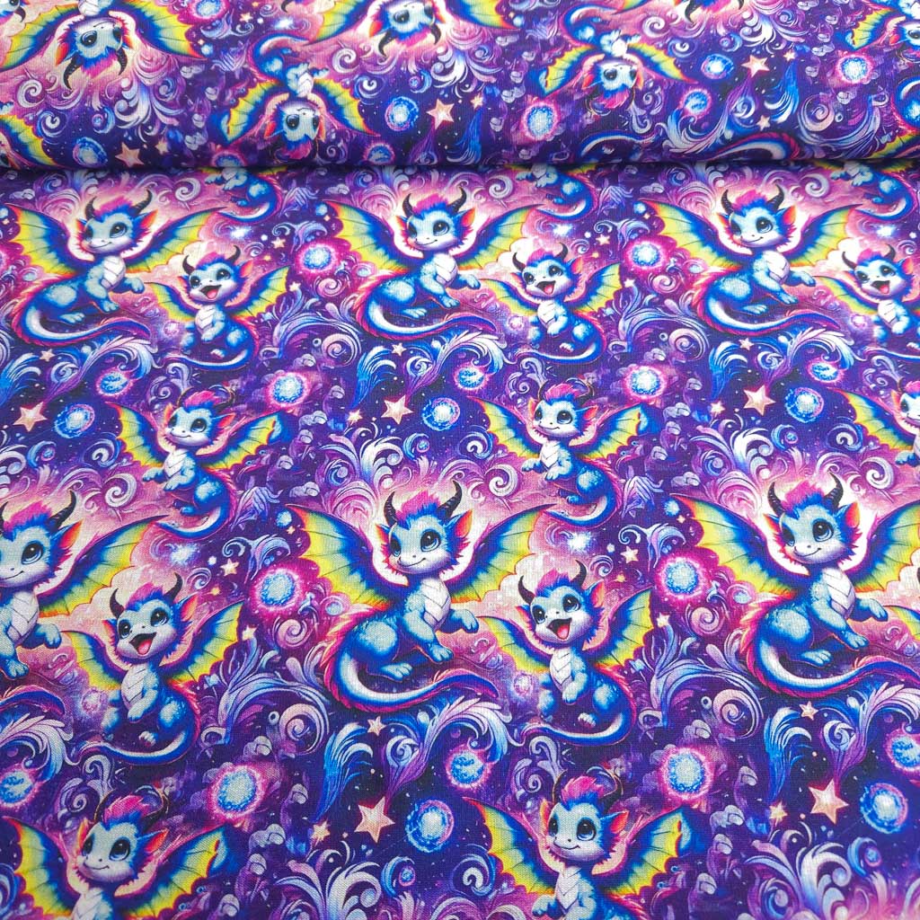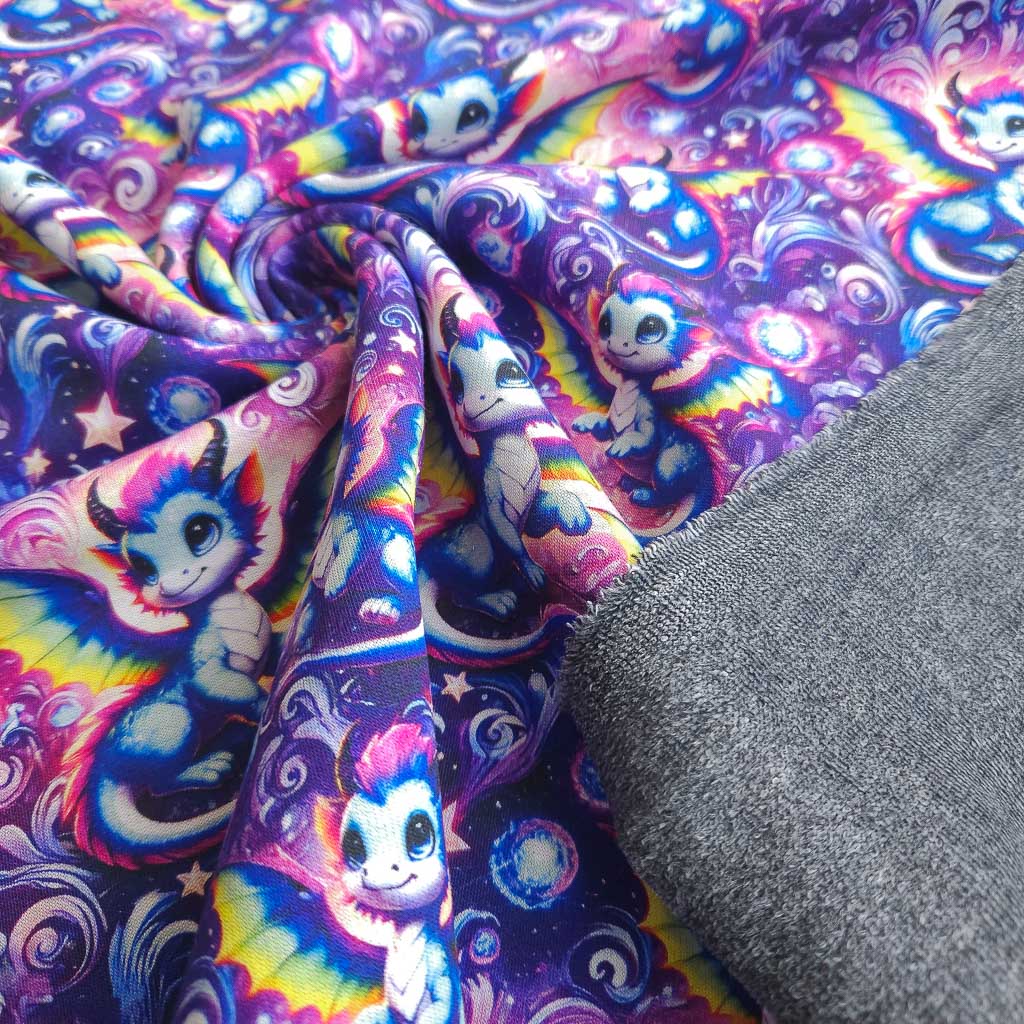 Dieser Alpenfleece Stoff als Meterware bringt sofort Wärme und Gemütlichkeit in deine Nähprojekte. Die Drachen in Violett machen diesen Stoff zu einem echten Hingucker – perfekt für die kommende Übergangszeit.