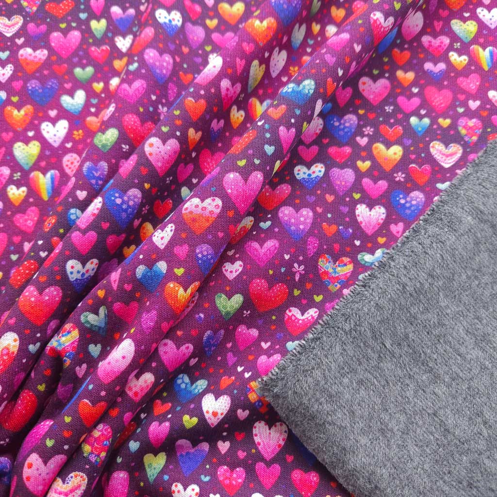 Dieser Alpenfleece Stoff als Meterware bringt sofort Wärme und Gemütlichkeit in deine Nähprojekte. Die süßen Herzchen auf Pink machen diesen Stoff zu einem echten Hingucker – perfekt für die kommende Übergangszeit.