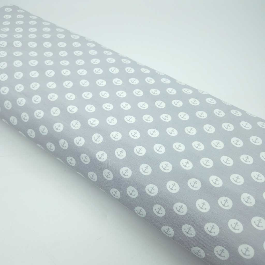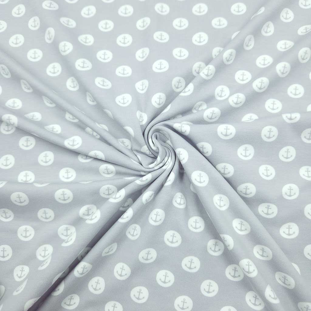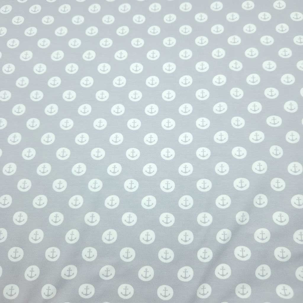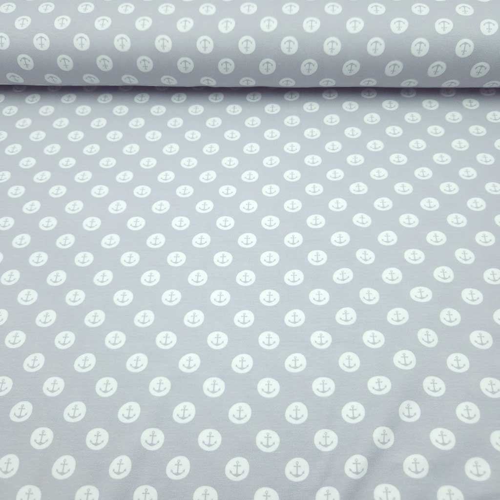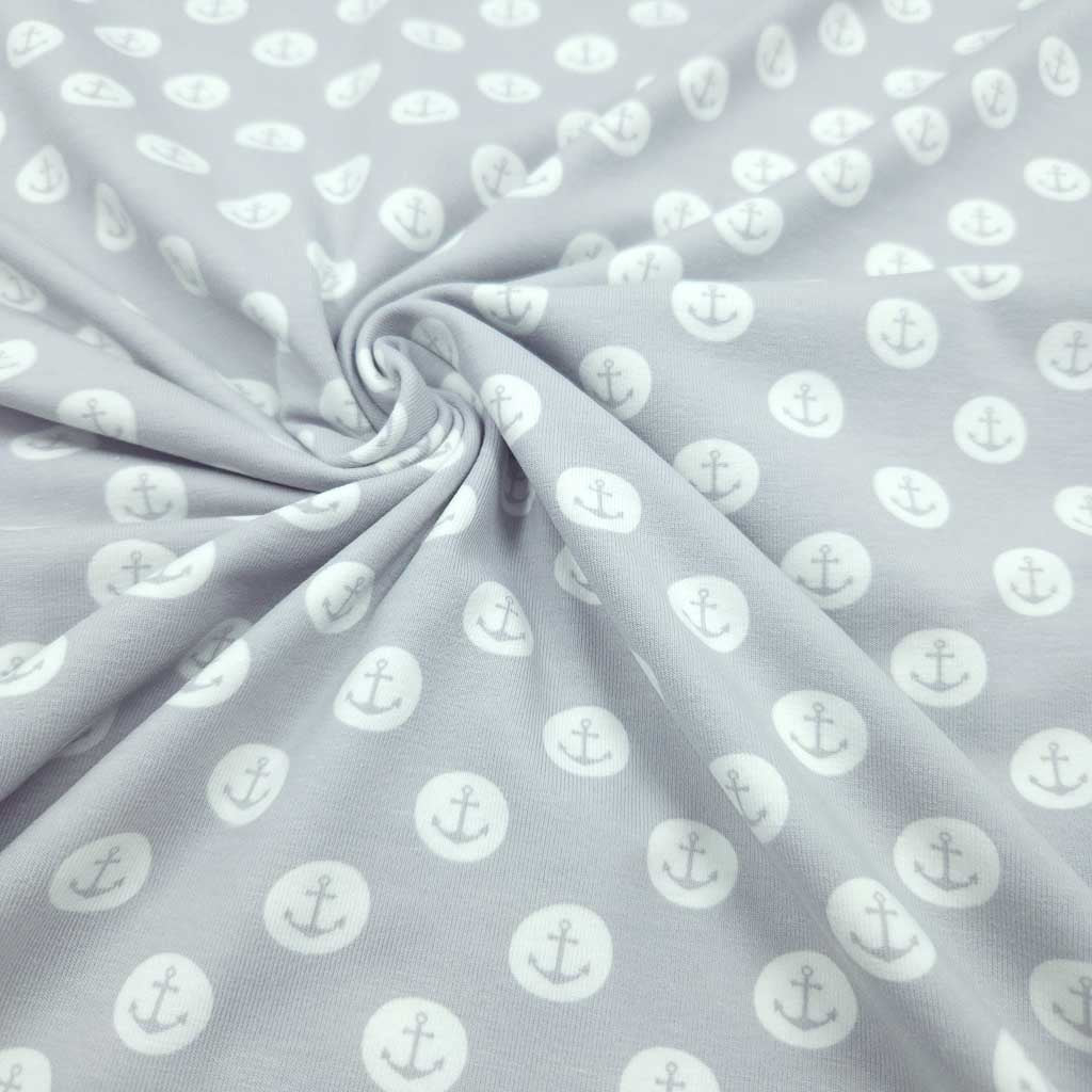 Baumwolljersey Anker – Grau – weich, elastisch und hautfreundlich. Der Stoff ist Oeko‑Tex zertifiziert und fühlt sich super angenehm an. Maritime Eleganz in softem Grau: Dieser Baumwolljersey mit feinen Ankern wirkt ruhig, modern und super kombinierbar.