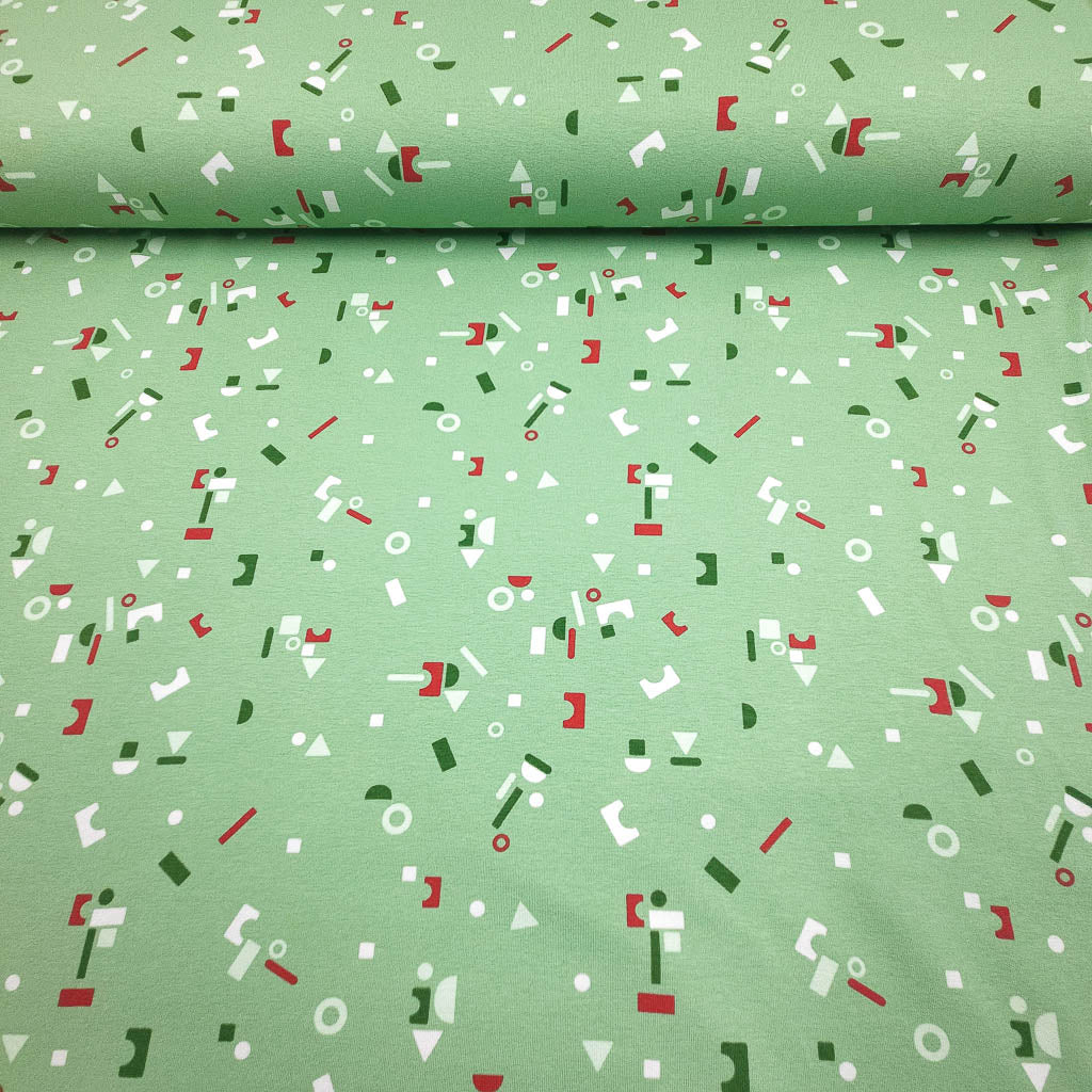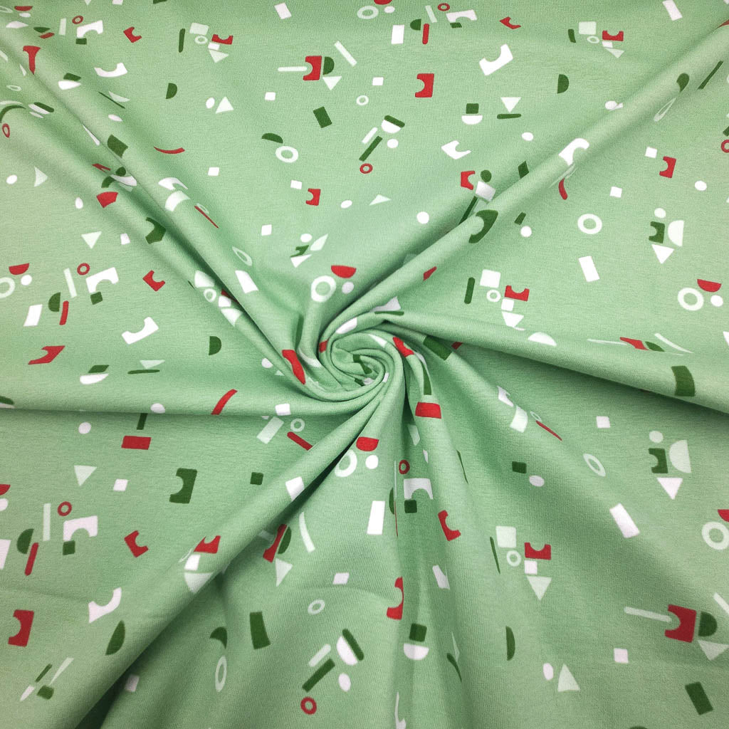 Baumwolljersey Konfetti Mint: Hol dir diesen weichen Baumwolljersey – elastisch, anschmiegsam und perfekt für deine nächsten Projekte. Das fröhliche Konfetti-Optik in Mint mit Weiß und Rot Design macht richtig Lust aufs Nähen. Der Stoff ist Oeko‑Tex Standard 100 zertifiziert – gut zur Haut und zur Umwelt. ✂️🧵