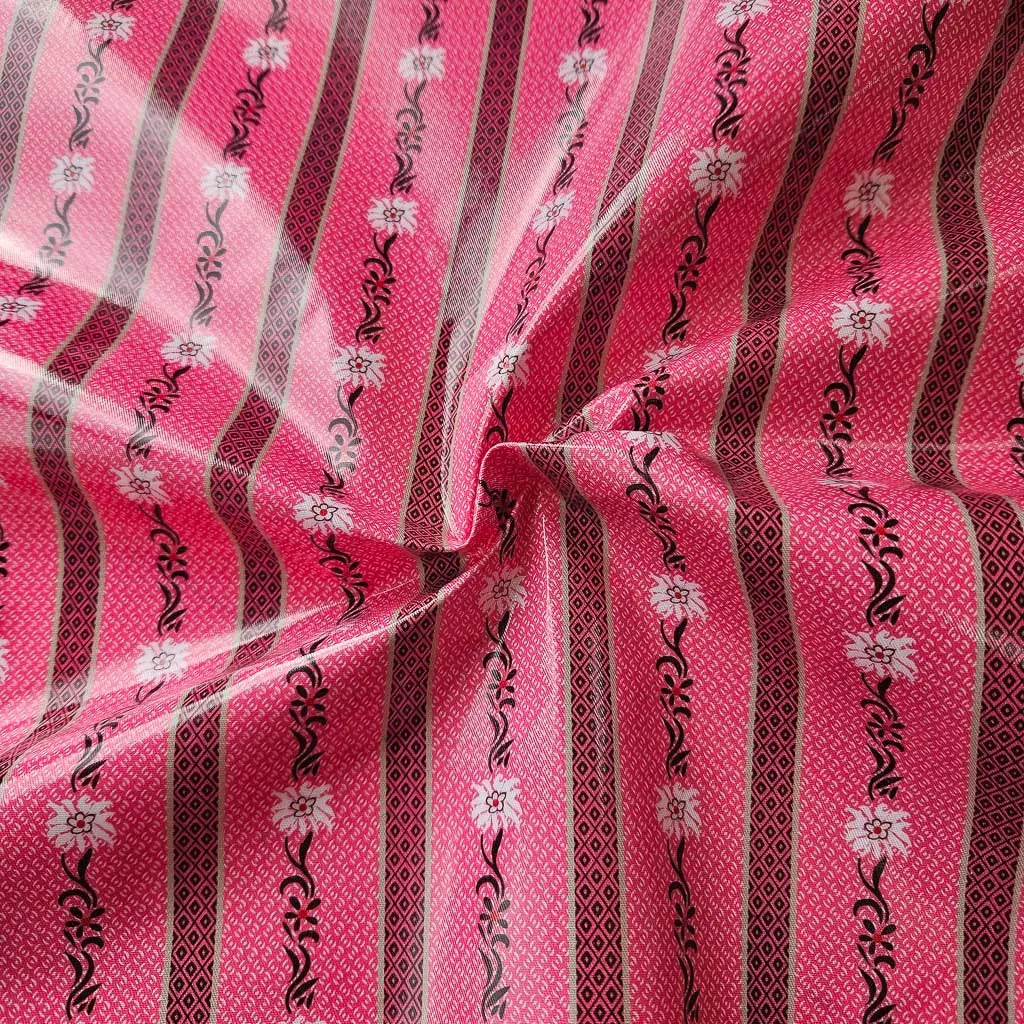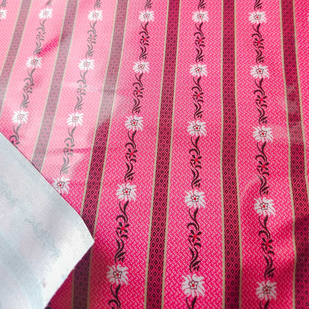 Dieses fröhliche Wachstuch in Pink mit traditionellen Edelweiss-Ranken ist nicht nur praktisch, sondern auch ein echter Blickfang. Das beschichtete Baumwolltuch ist pflegeleicht, abwischbar und strapazierfähig – ideal für kreative Projekte und den täglichen Einsatz.