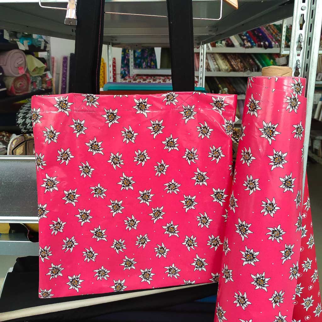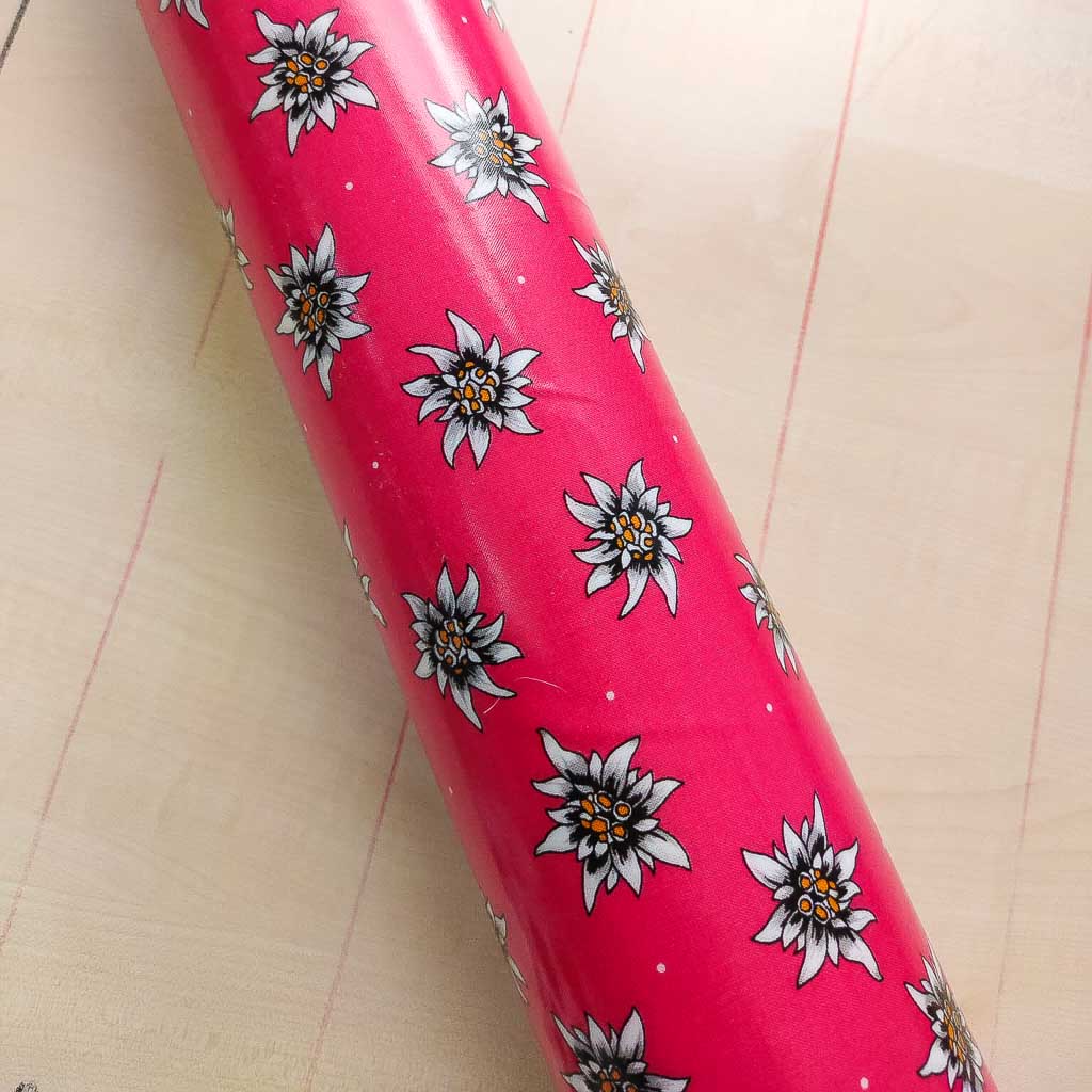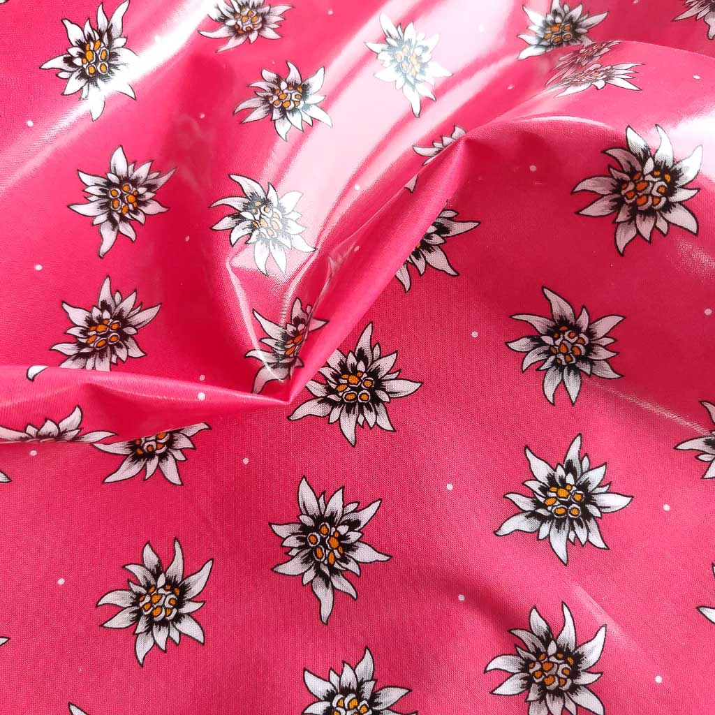 🧵 Produktbeschreibung – Wachstuch Stoff pink mit Edelweiß