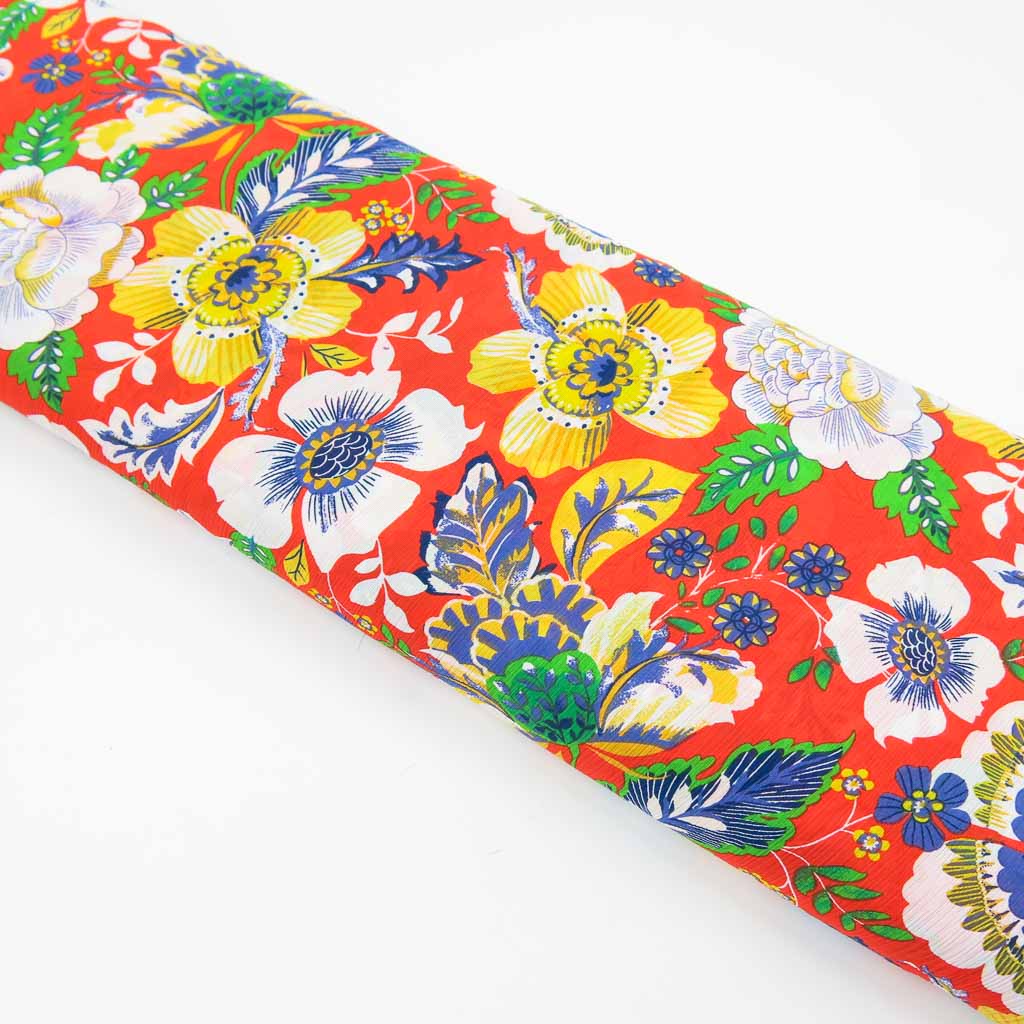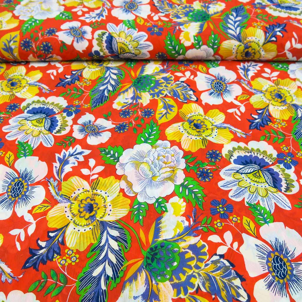 Mit unserem Chiffon - Sommerblumen auf Rot bekommst du einen vielseitigen Stoff für deine Nähideen. Der Stoff ist nach Oeko‑Tex Standard 100 zertifiziert, angenehm auf der Haut und überzeugt durch seine hochwertige Qualität. 🌺✨
