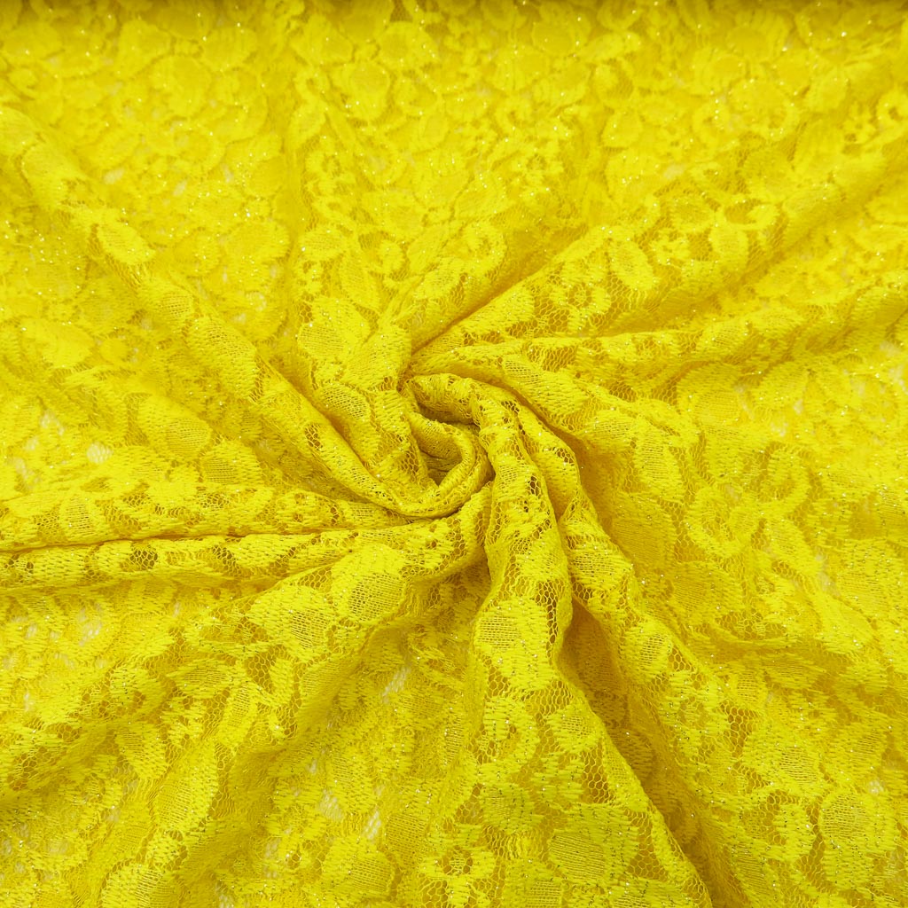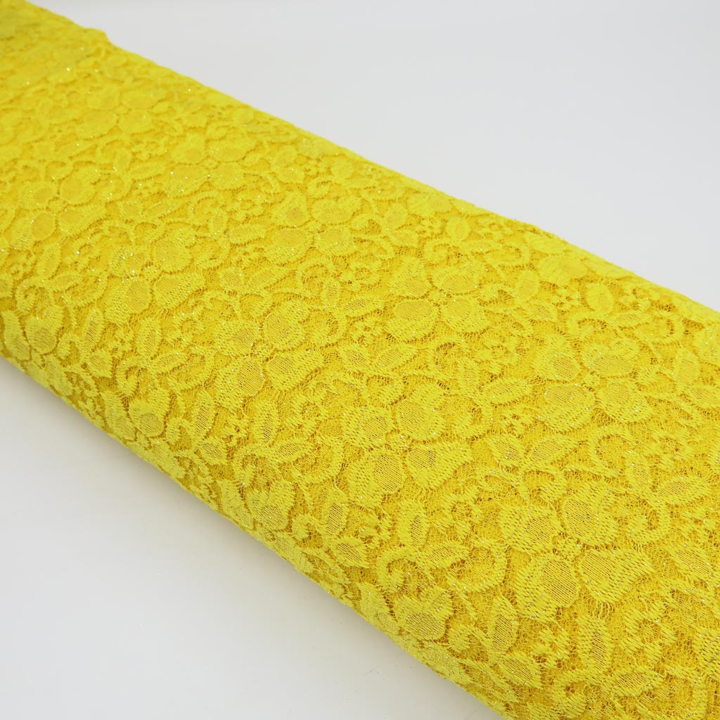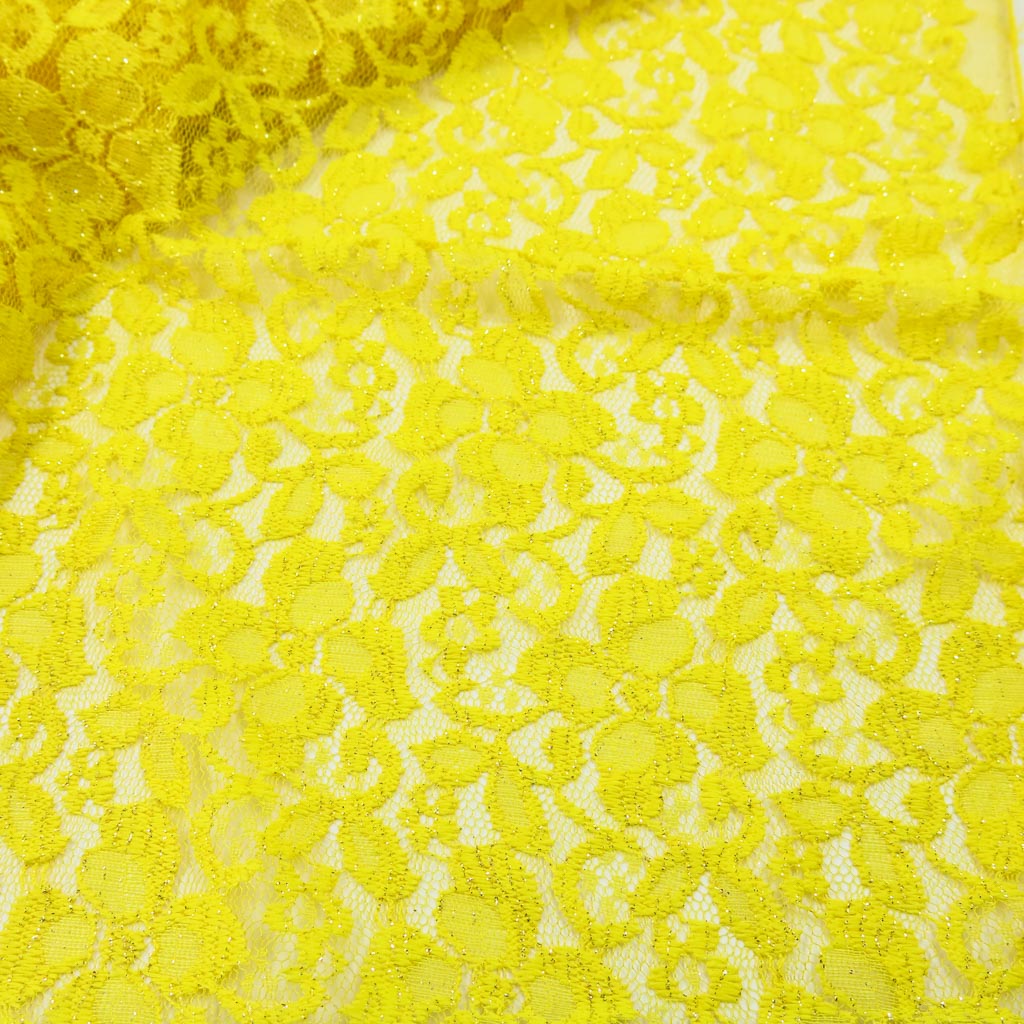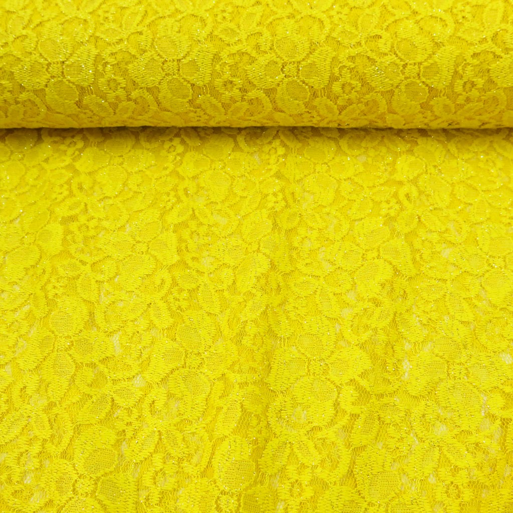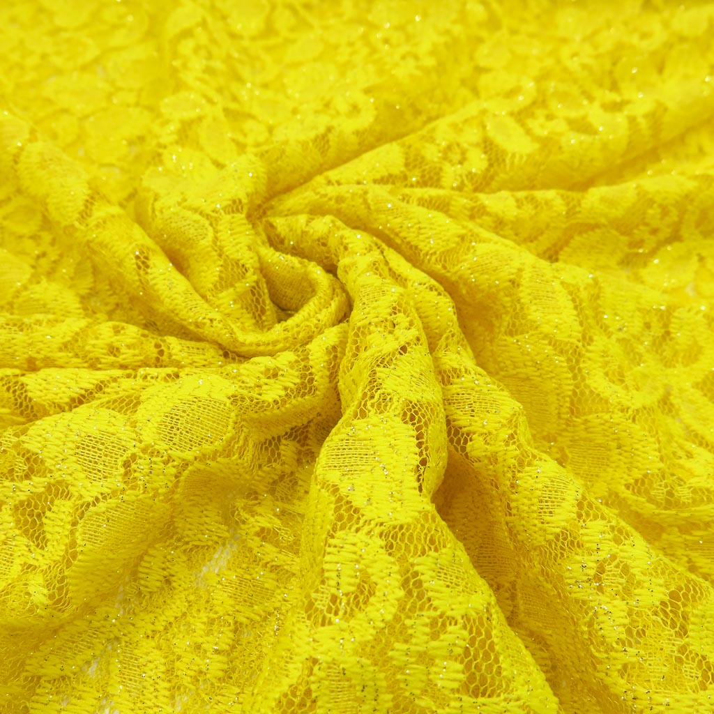 Mit unserem Spitzenstoff - Gelb mit Gitzer bekommst du einen vielseitigen Stoff für deine Nähideen. Der Stoff ist nach Oeko‑Tex Standard 100 zertifiziert, angenehm auf der Haut und überzeugt durch seine hochwertige Qualität. 🌼✨