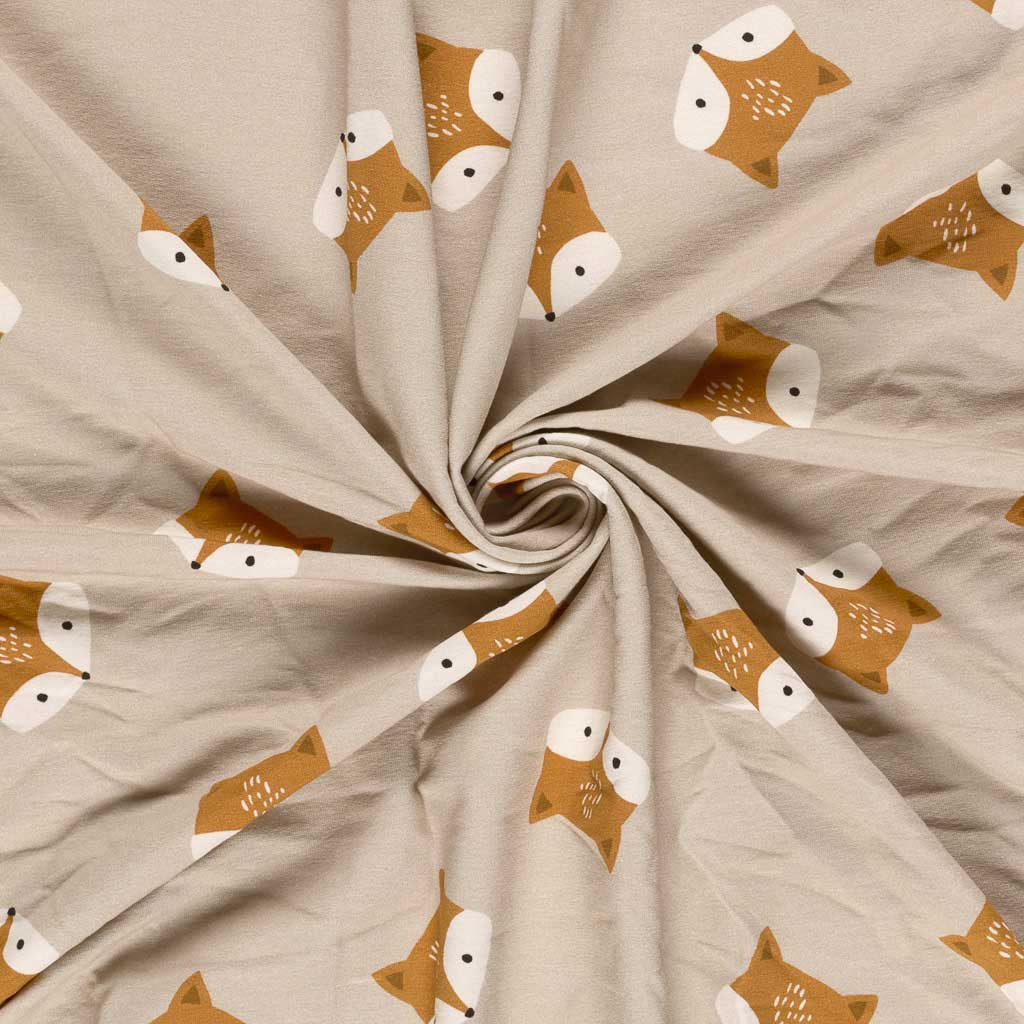 Dieser hochwertige Baumwoll French Terry Stoff mit liebevollem Fuchs-Motiv ist ein zeitloser Klassiker für Kinder- und Babykleidung. Die kleinen Füchse in warmen Braun- und Naturtönen liegen ruhig auf einem sanften beigen Hintergrund und wirken verspielt, aber nicht aufdringlich – ideal für langlebige Lieblingsstücke.
