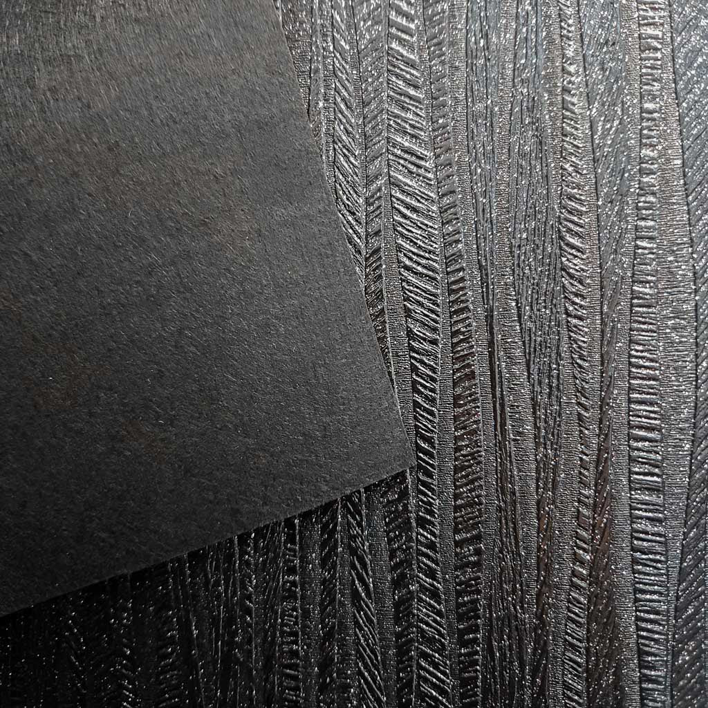 Französisches Kunstleder – Schwarz mit Glitzer & Längsstreifen – edles Kunstleder aus Frankreich für stilvolle DIY‑Projekte. Die Oberfläche zeigt eine reliefierte, edle Struktur in Tiefschwarz (fischgrätähnlich). Der Stoff ist OEKO‑TEX® Standard 100 zertifiziert, angenehm im Griff und formstabil – perfekt, wenn du Eleganz mit Alltagstauglichkeit verbinden möchtest. ✂️✨