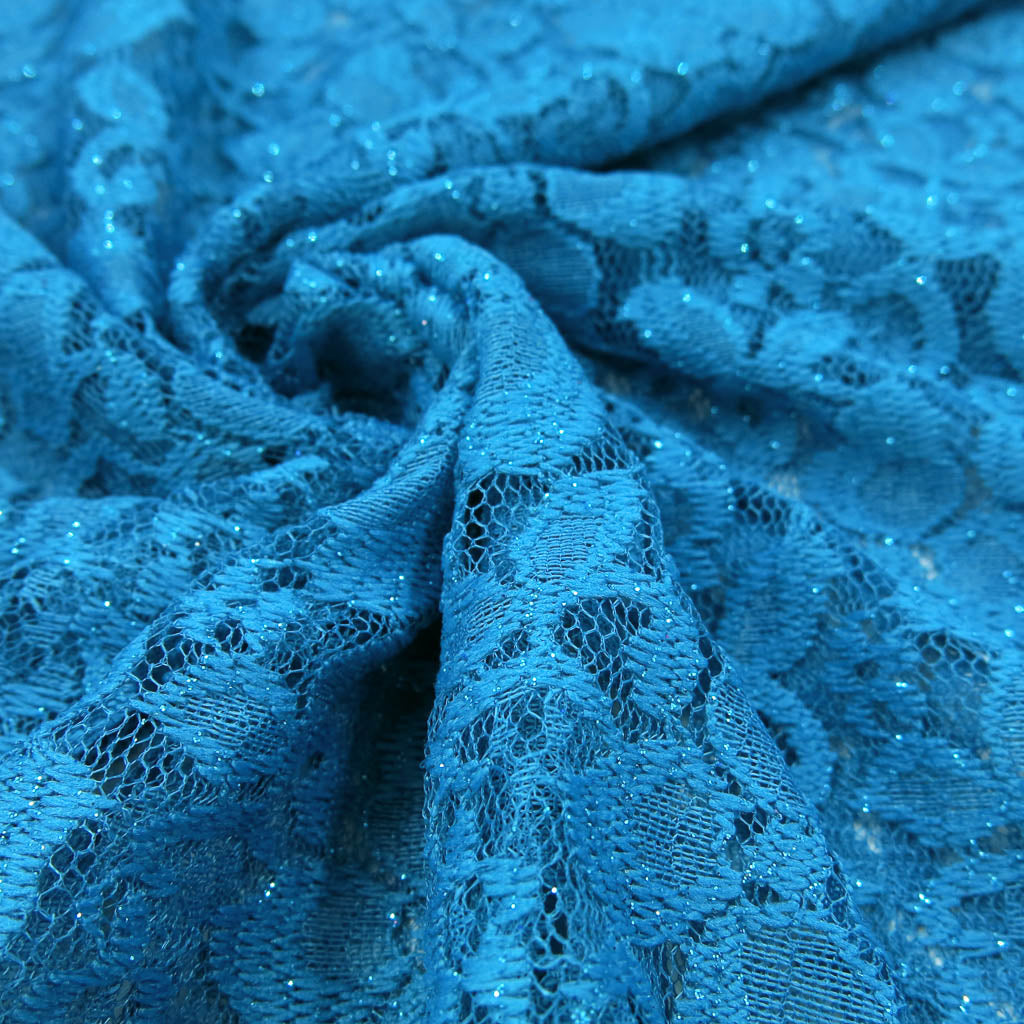 Spitze Türkis – zart & glitzernd – ein Stoff zum Verlieben! Die weiche Qualität fällt schön und fühlt sich wunderbar auf der Haut an. Das Design in funkelndem Türkis mit feinem Glitzer macht deine Nähprojekte zu echten Lieblingsstücken. Der Stoff ist Oeko‑Tex Standard 100 zertifiziert – für ein gutes Gefühl beim Tragen. ✂️💖