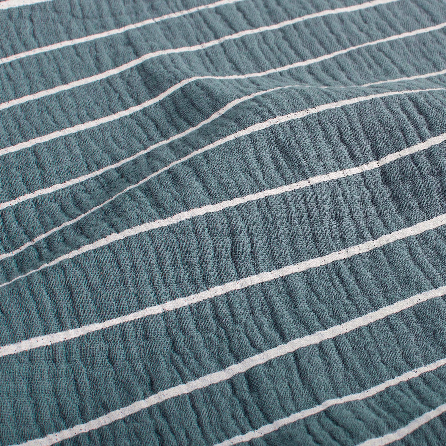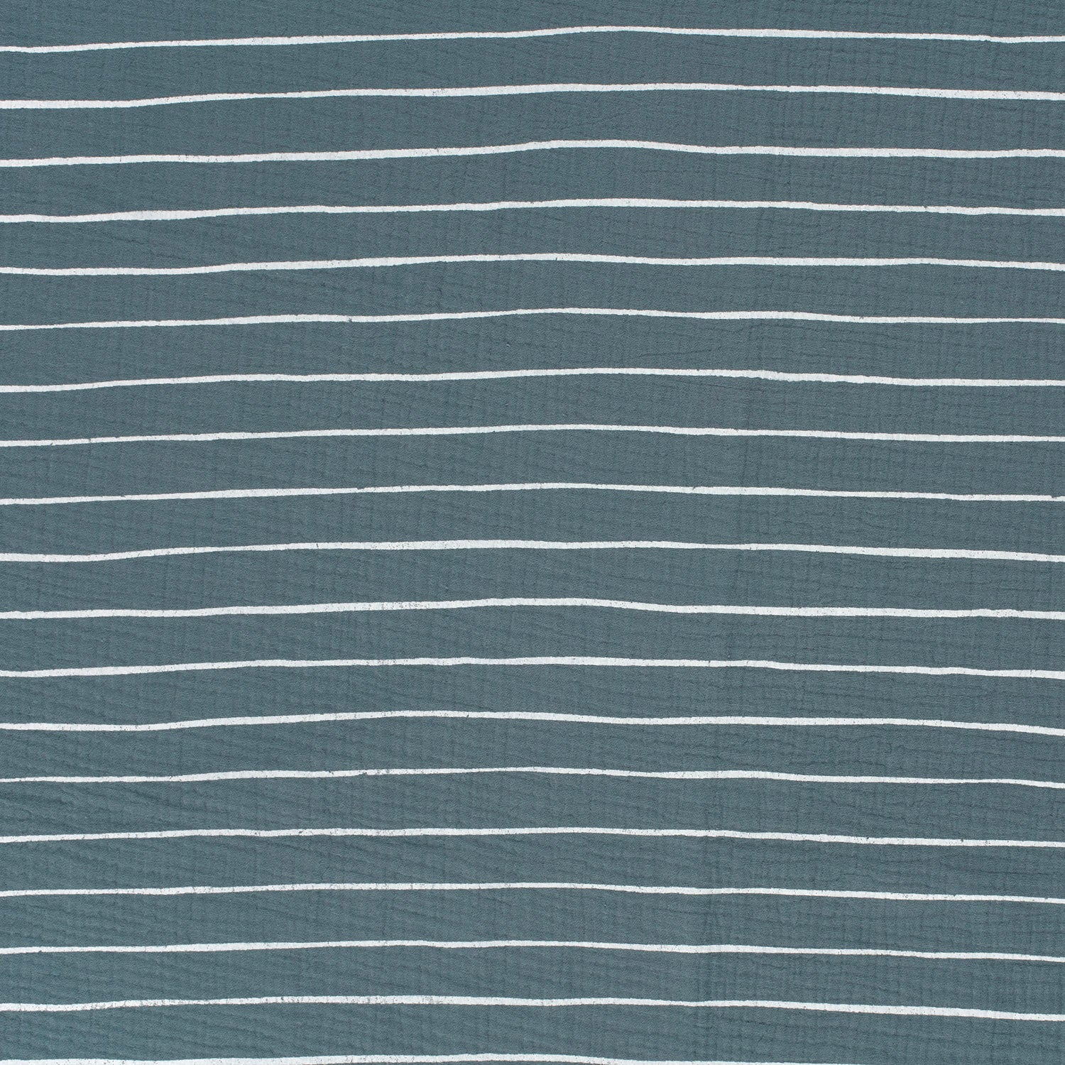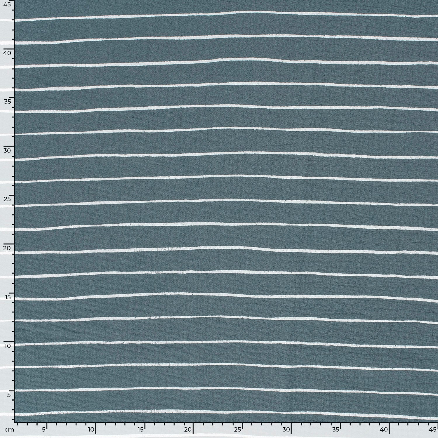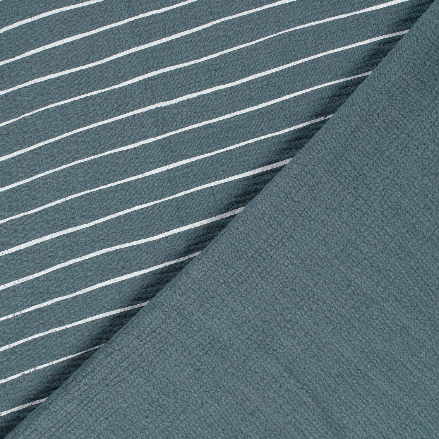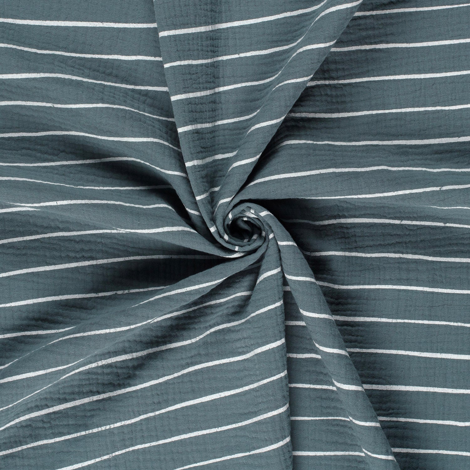Warme Farben, weicher Griff – dieser Musselin-Stoff bringt echtes Herbstgefühl in deine Nähideen 🍂. Mit seinen tollen Streifen auf dem rauchigen Petrol farbenen Grund ist er ein echter Hingucker für moderne, natürliche DIY-Projekte.