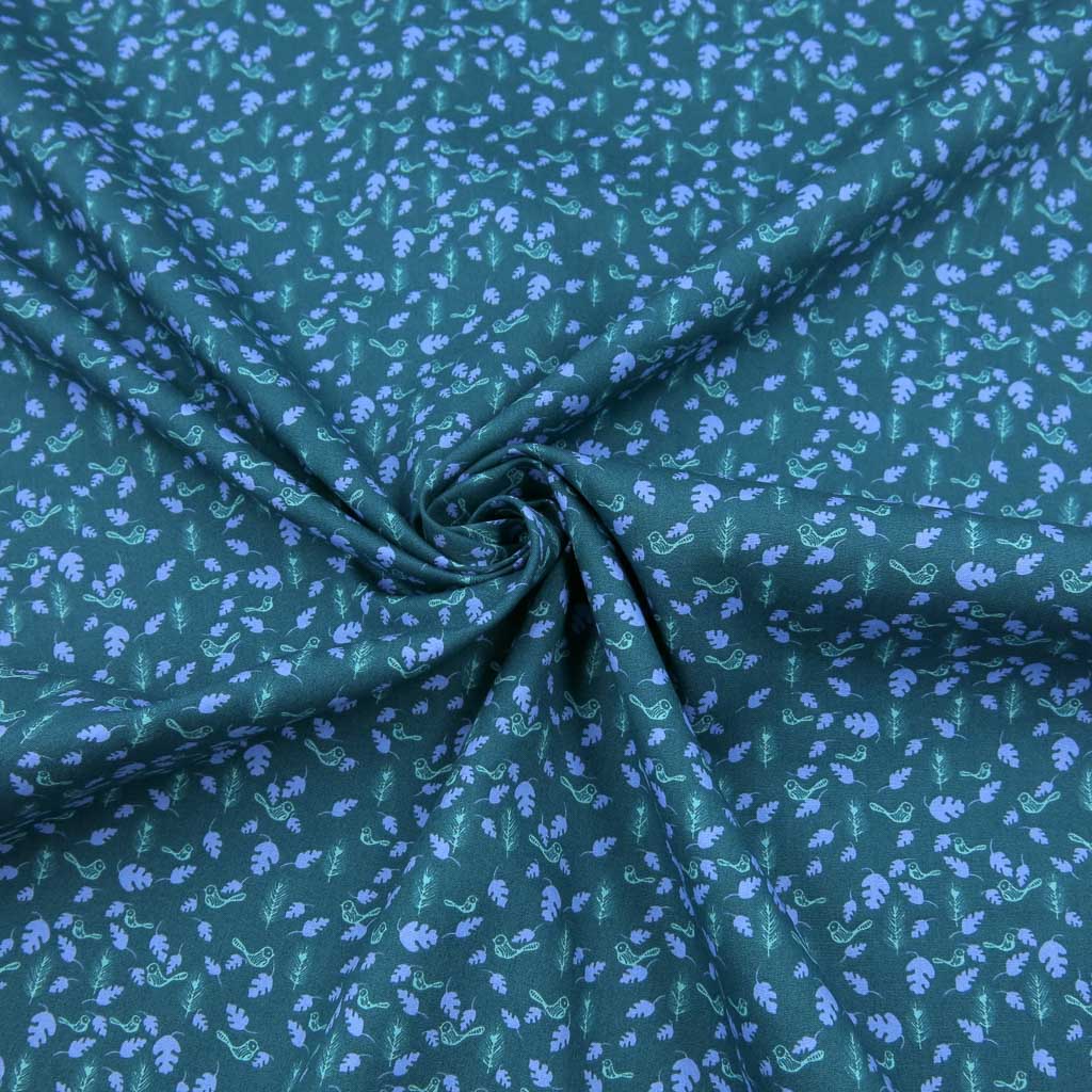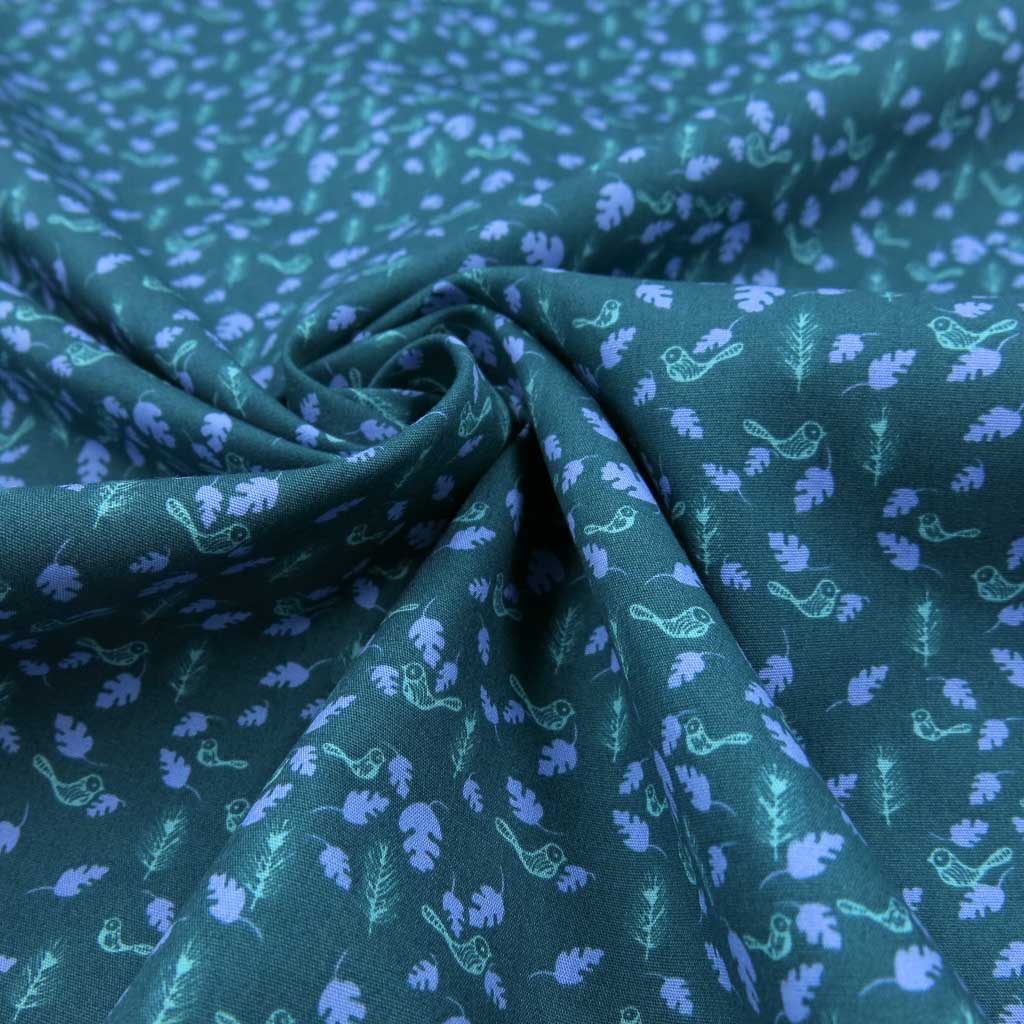 Baumwollstoff Popeline - Blätter & Vögel auf Petrol