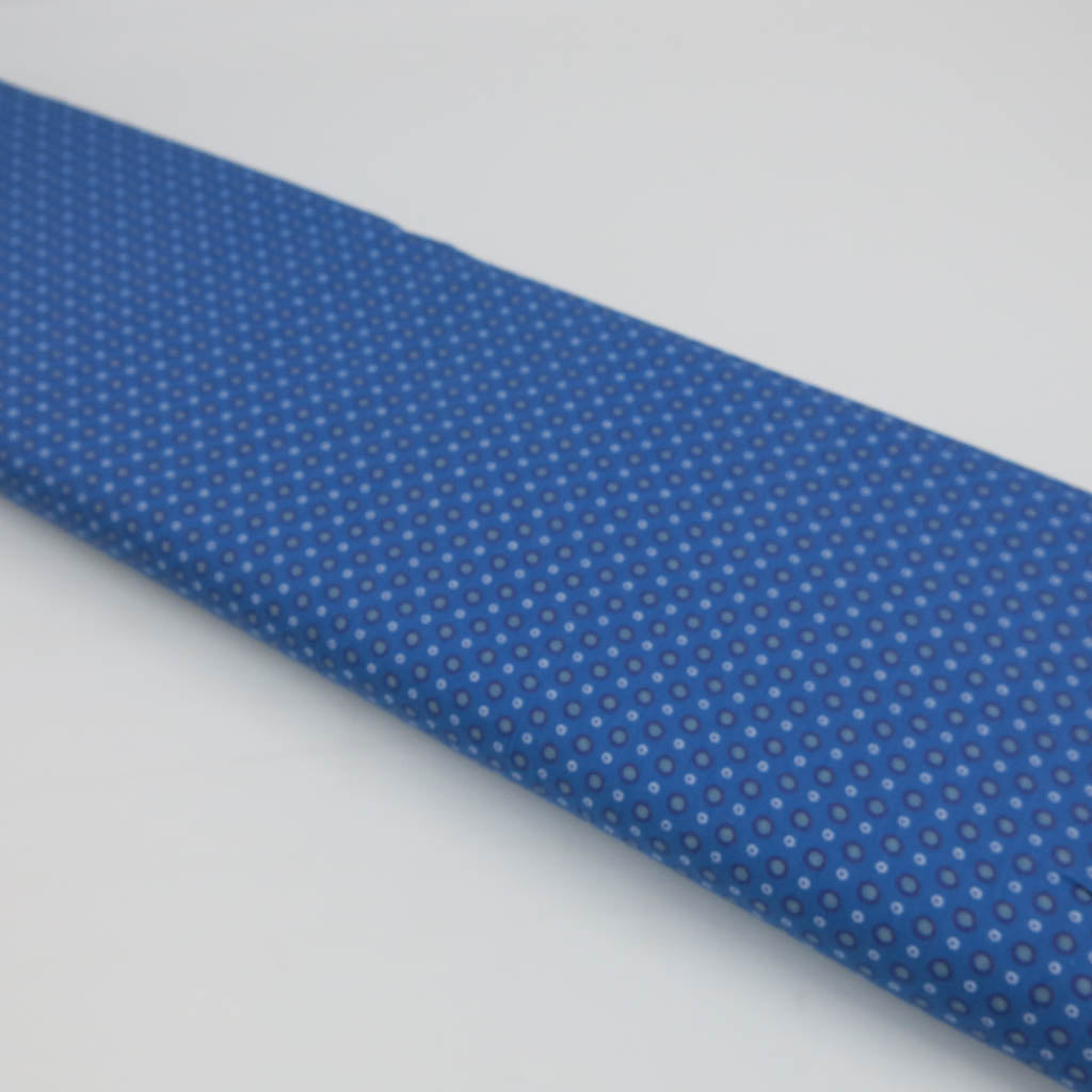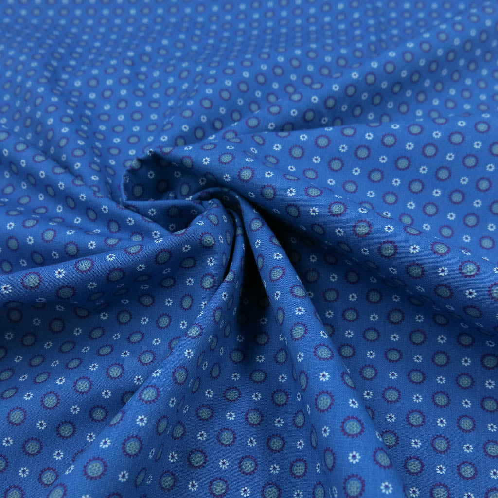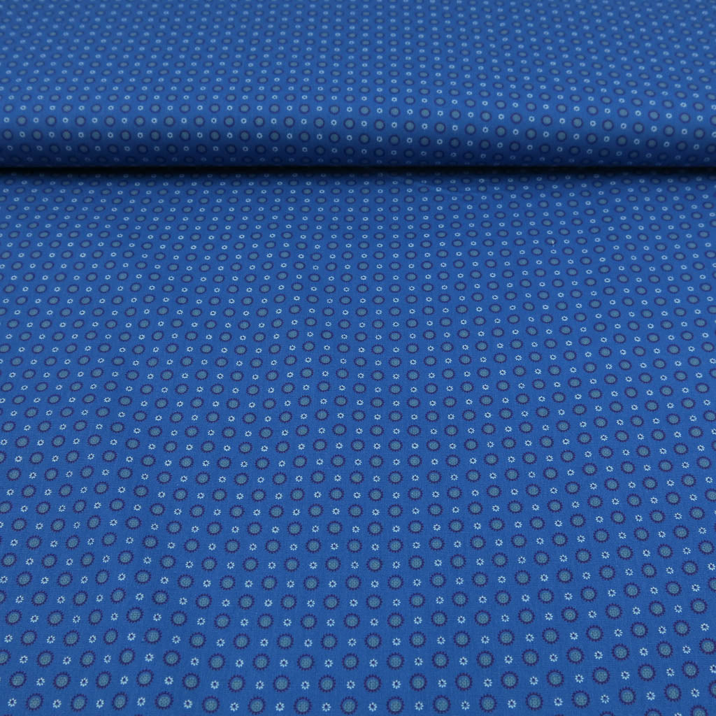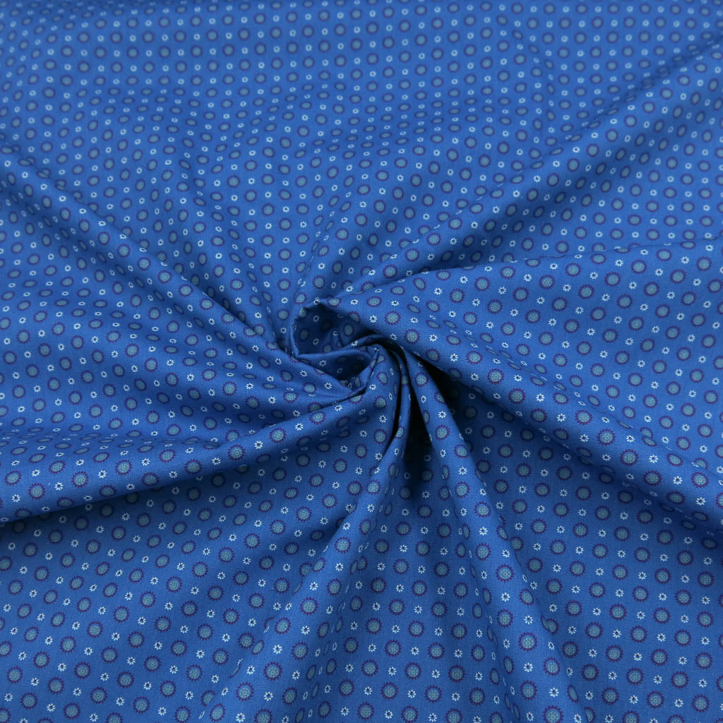 Baumwollstoff Popeline – Kleines Kreismuster auf Blau bringt dir ein hochwertiges Material für viele Nähideen ins Atelier. Die Oberfläche zeigt kleine Kreise in Blau und Petrol und fühlt sich angenehm an der Haut an. Der Stoff ist Oeko‑Tex Standard 100 zertifiziert – ideal für Projekte, die gut aussehen und sich gut anfühlen. ✂️🧵