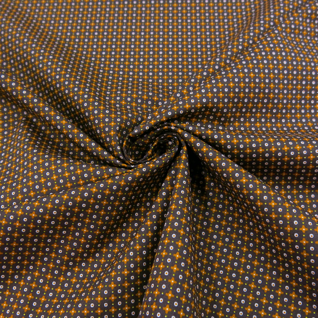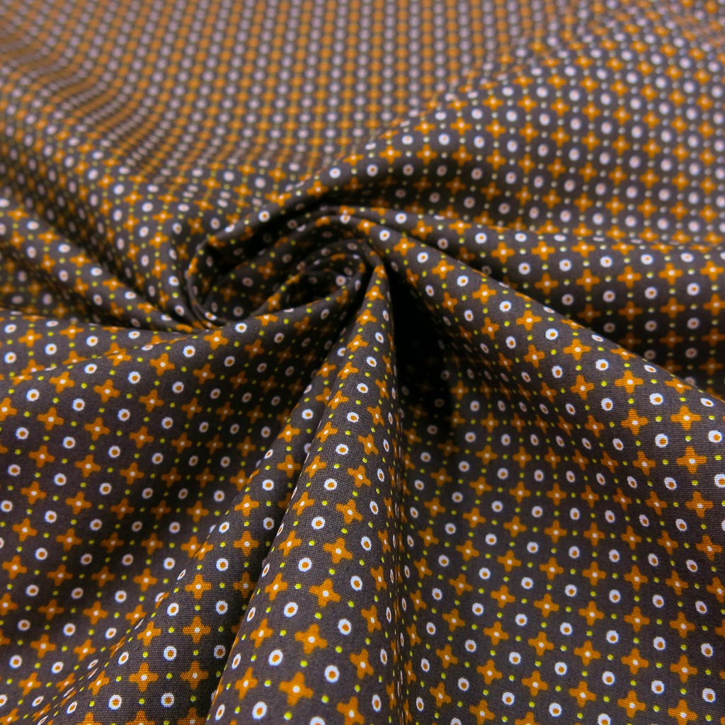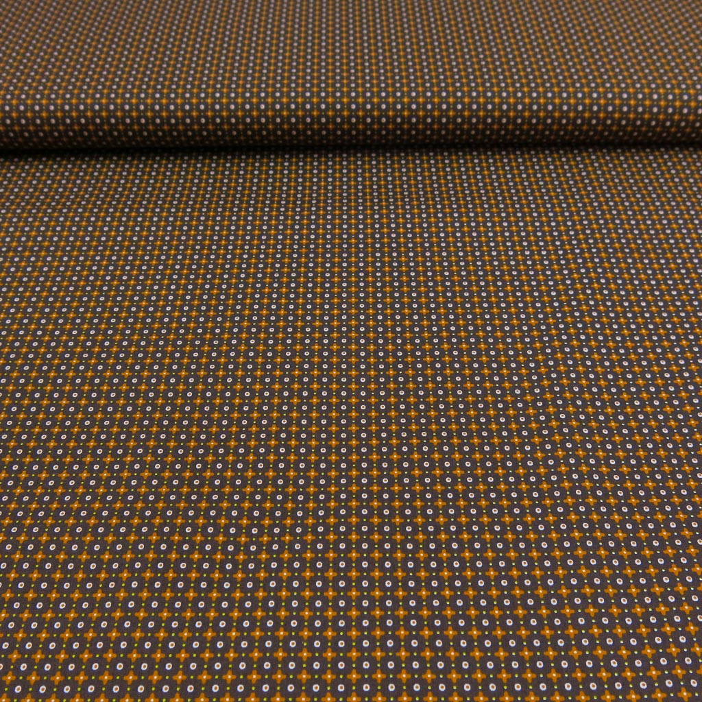 Baumwollstoff Popeline - Kleines Kreuzmuster auf Braun bringt frischen Schwung an deine Nähmaschine: weich, formstabil und wunderbar angenehm auf der Haut. Oeko‑Tex Standard 100 zertifiziert – perfekt für Lieblingsstücke. ✂️🧵