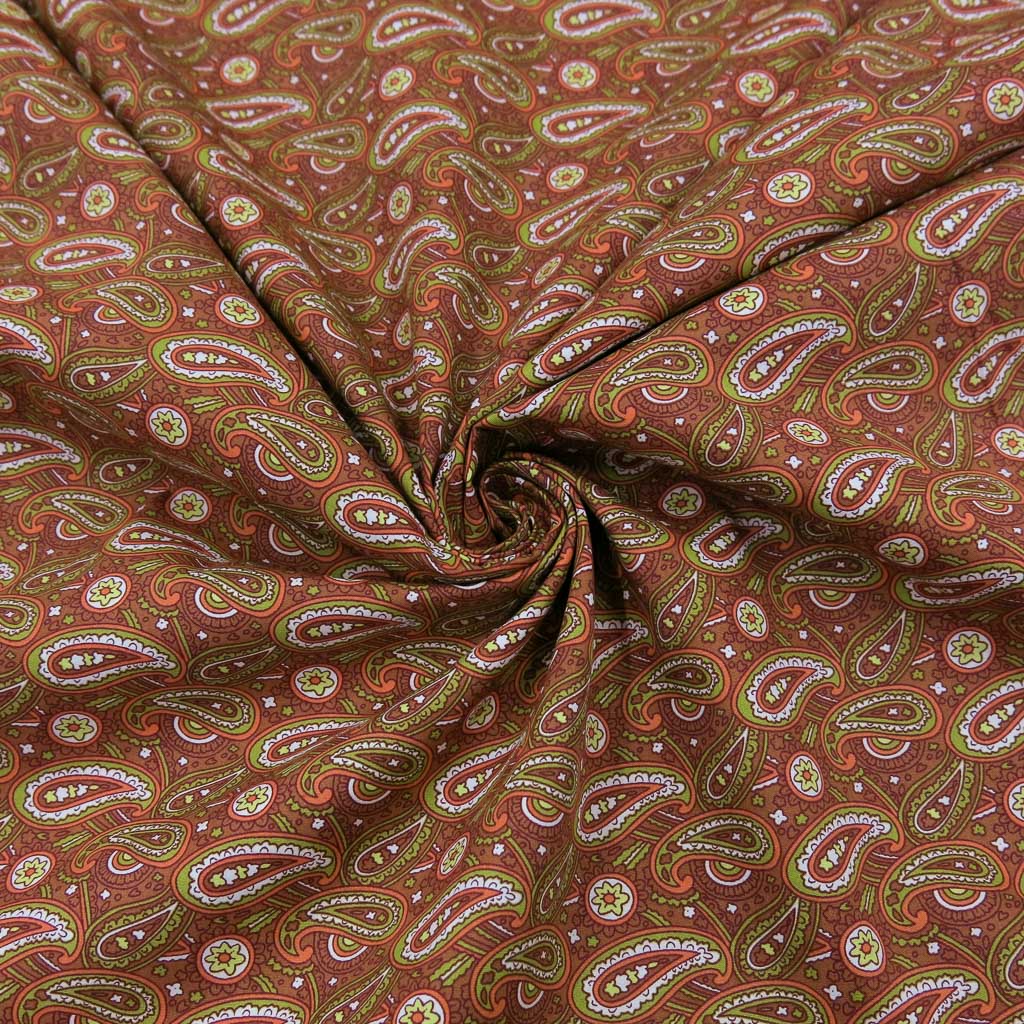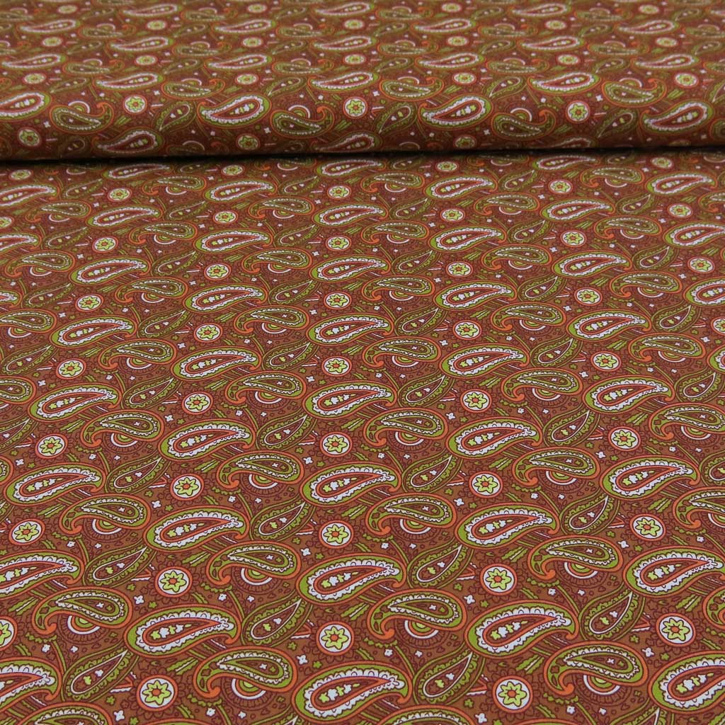Mit unserem Baumwollstoff Popeline - Paisley auf Rost holst du dir einen hochwertigen Stoff für deine Nähideen. Der Stoff ist Oeko-Tex Standard 100 zertifiziert, angenehm auf der Haut und überzeugt durch seine schöne Optik und Qualität. 🌀🧵