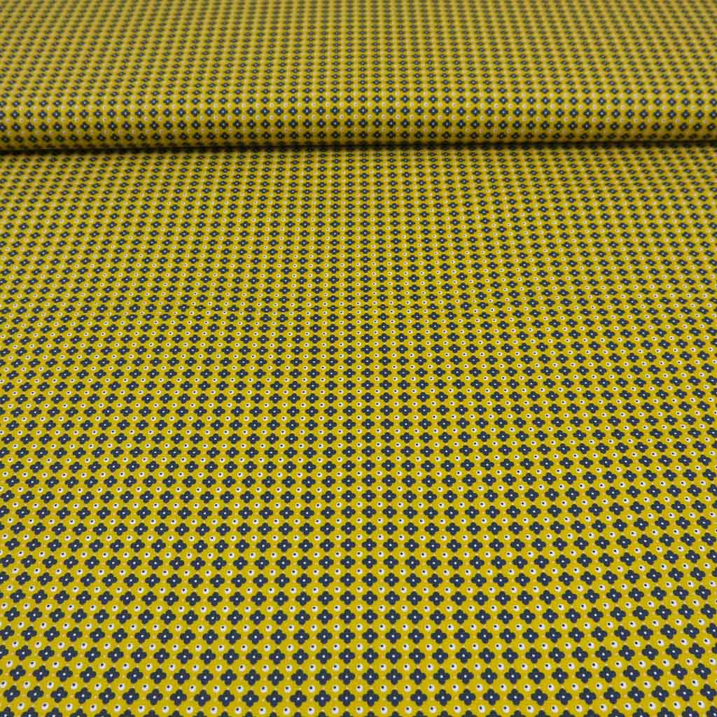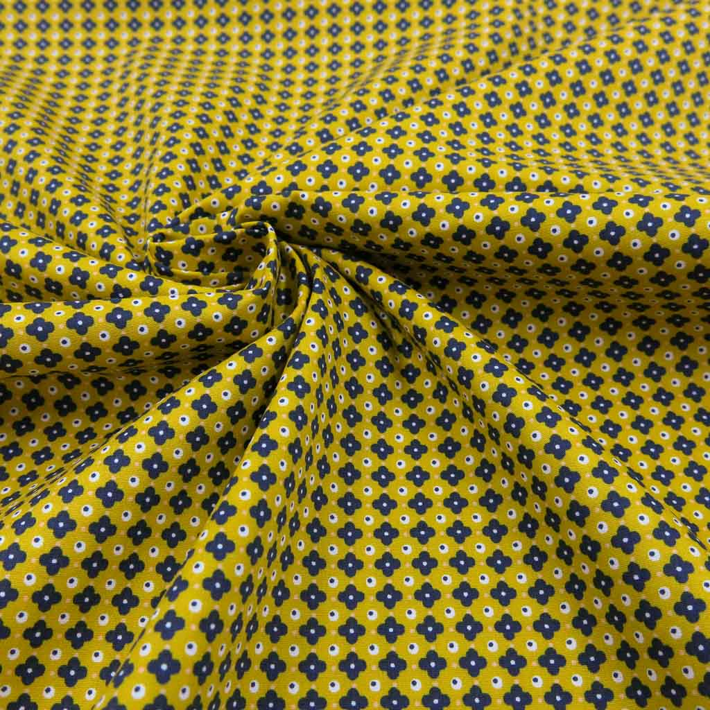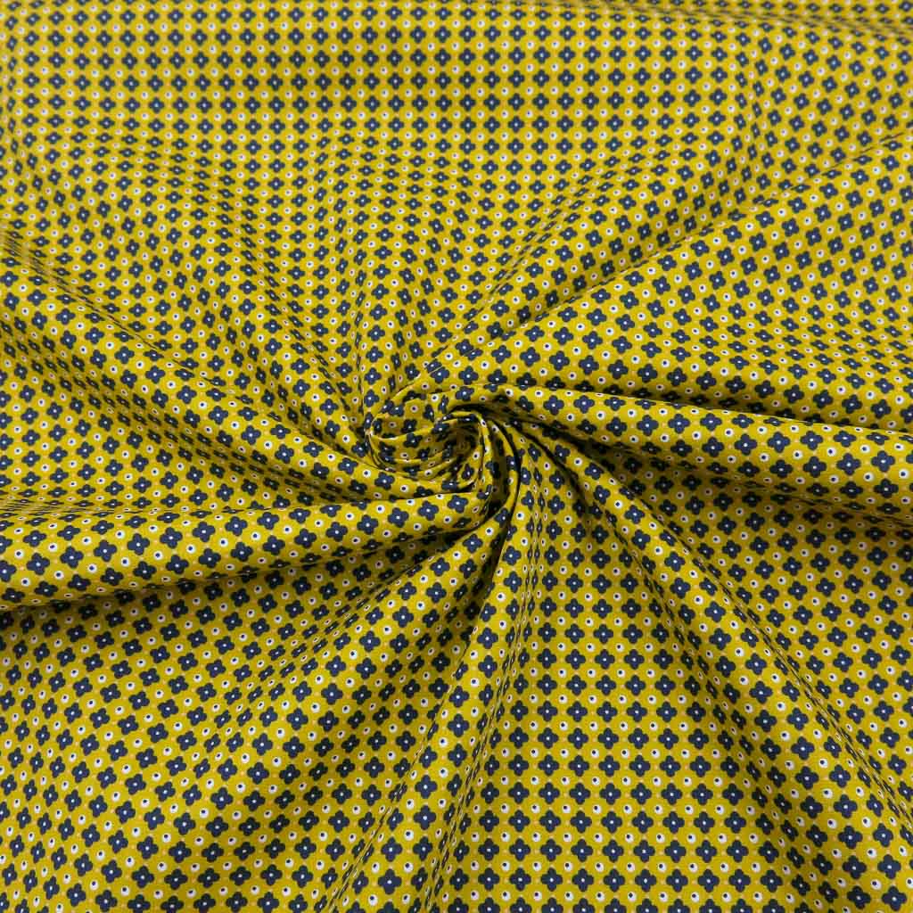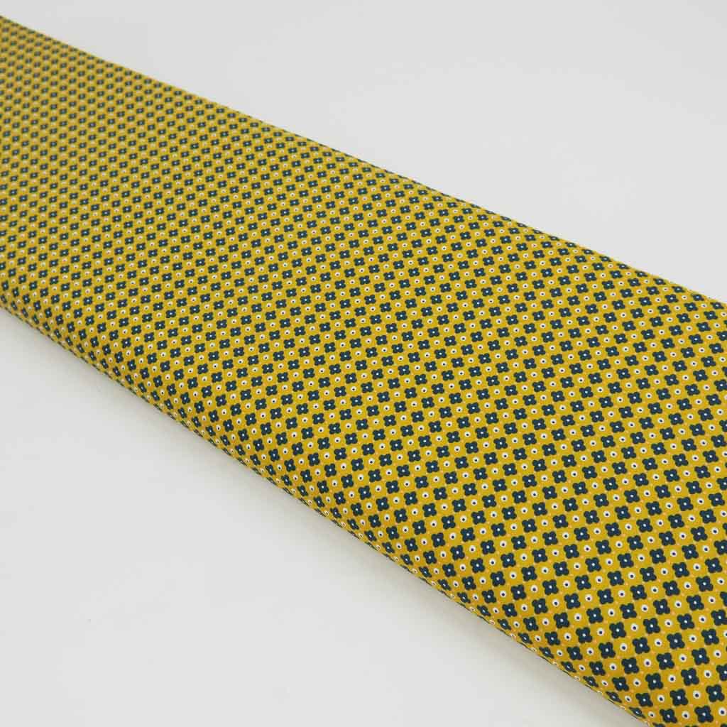 Mit unserem Baumwollstoff Popeline - Retro Blümchen auf Senf holst du dir einen hochwertigen Stoff für deine Nähideen. Der Stoff ist Oeko-Tex Standard 100 zertifiziert, angenehm auf der Haut und überzeugt durch seine schöne Optik und Qualität. 🌼✨