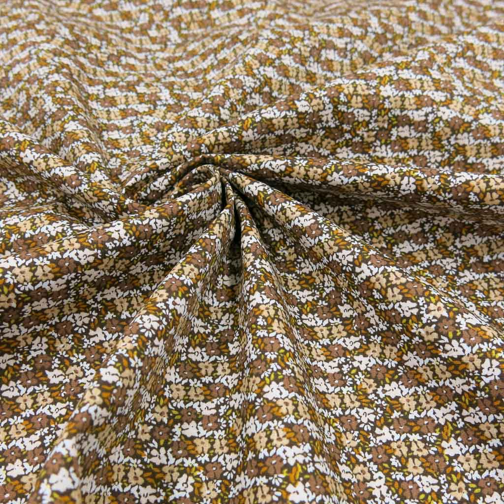 Baumwollstoff Popeline - Streublümchen in Braun – hochwertiger Stoff für deine kreativen Nähideen. Der Stoff ist Oeko‑Tex Standard 100 zertifiziert, fühlt sich angenehm an und lässt sich wunderbar verarbeiten. 🌿🧵