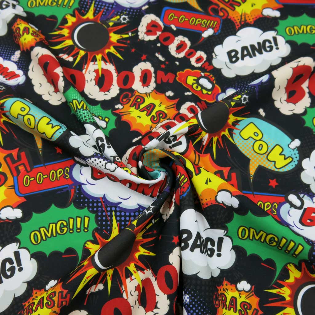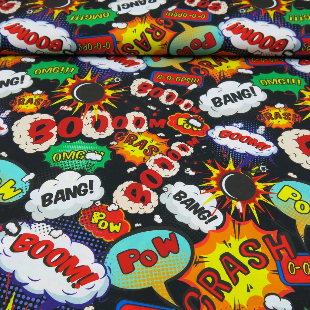 Burlington – Comic Pop Print – ein schöner Stoff für deine liebsten Nähmomente. Der Stoff ist Oeko‑Tex Standard 100 zertifiziert, angenehm auf der Haut und kommt mit einem Comic Pop-Art bunt auf Schwarz. Für bequeme Kleidung, liebevolle Geschenkideen und stylische Accessoires – dieser Stoff macht Lust aufs Nähen! ✨🎨
