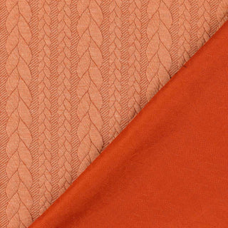 Viskosejersey Stoff – Blätter in Rost auf Petrol