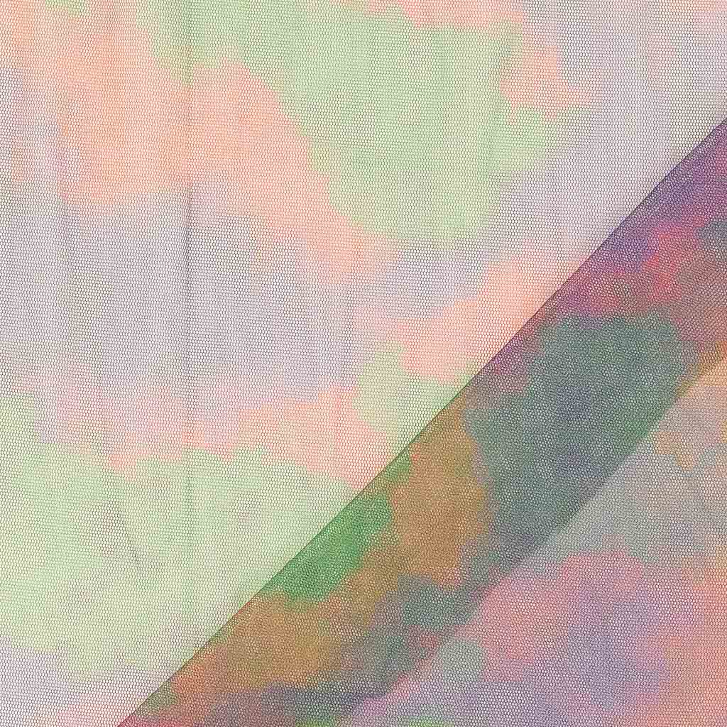 Dieser mehrfarbige Tüllstoff überzeugt mit seinen sanften, pastelligen Farbverläufen in Grün, Apricot und Grau. Der Stoff ist besonders fein, luftig und leicht elastisch – ideal für alle, die kreative, verspielte oder festliche Nähprojekte lieben.