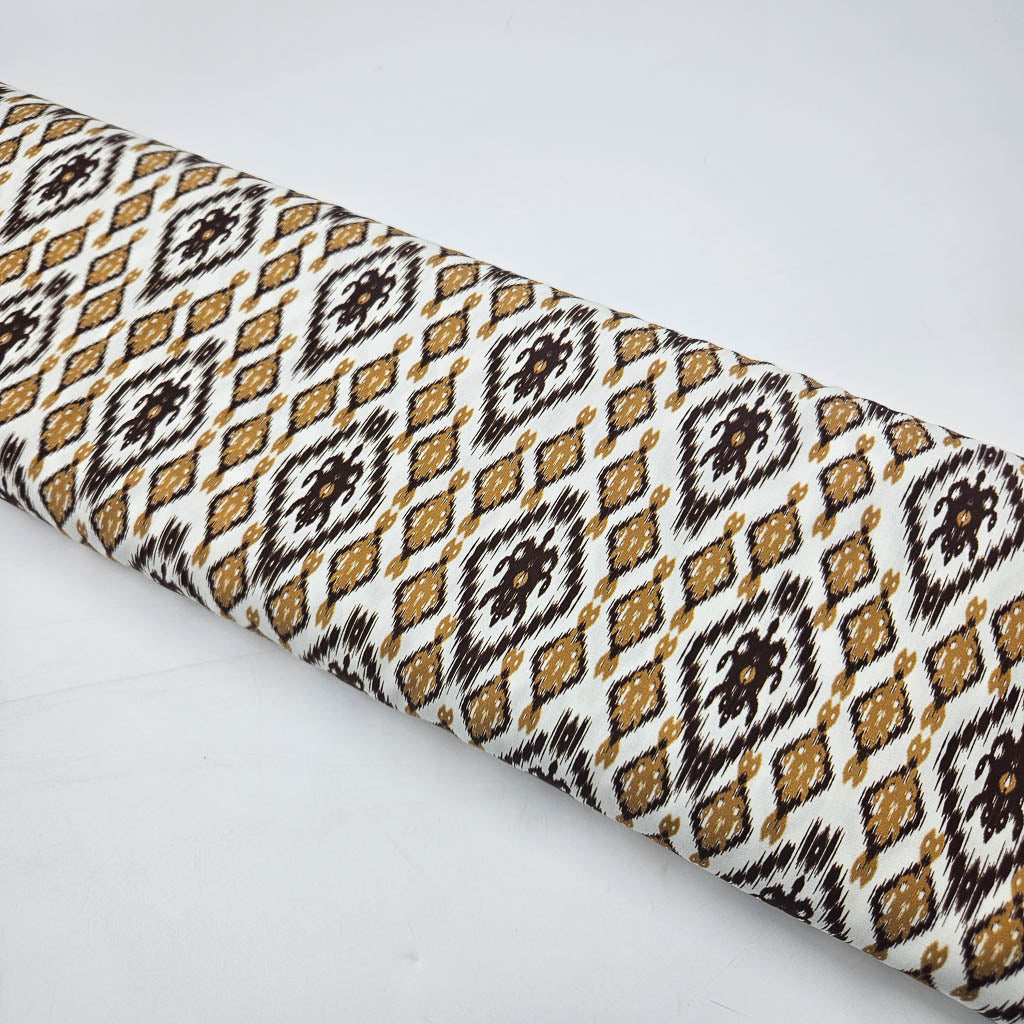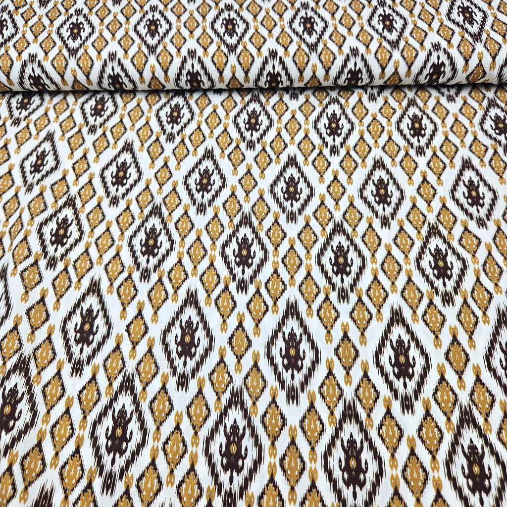 Ein Hauch Boho für deine Garderobe: das sanfte Creme trifft auf curryfarbene Diamantmotive – modern, warm und super kombinierbar. 🌞🧵