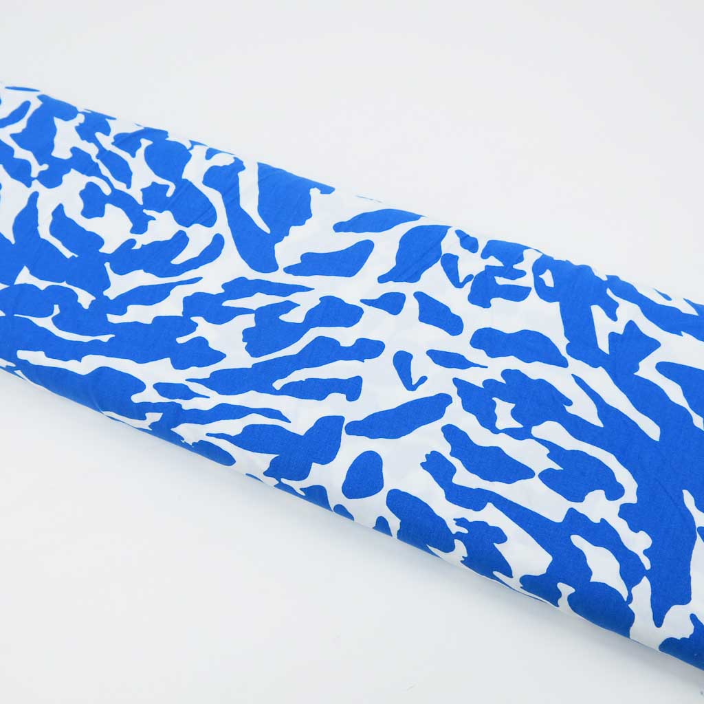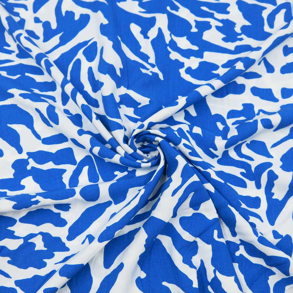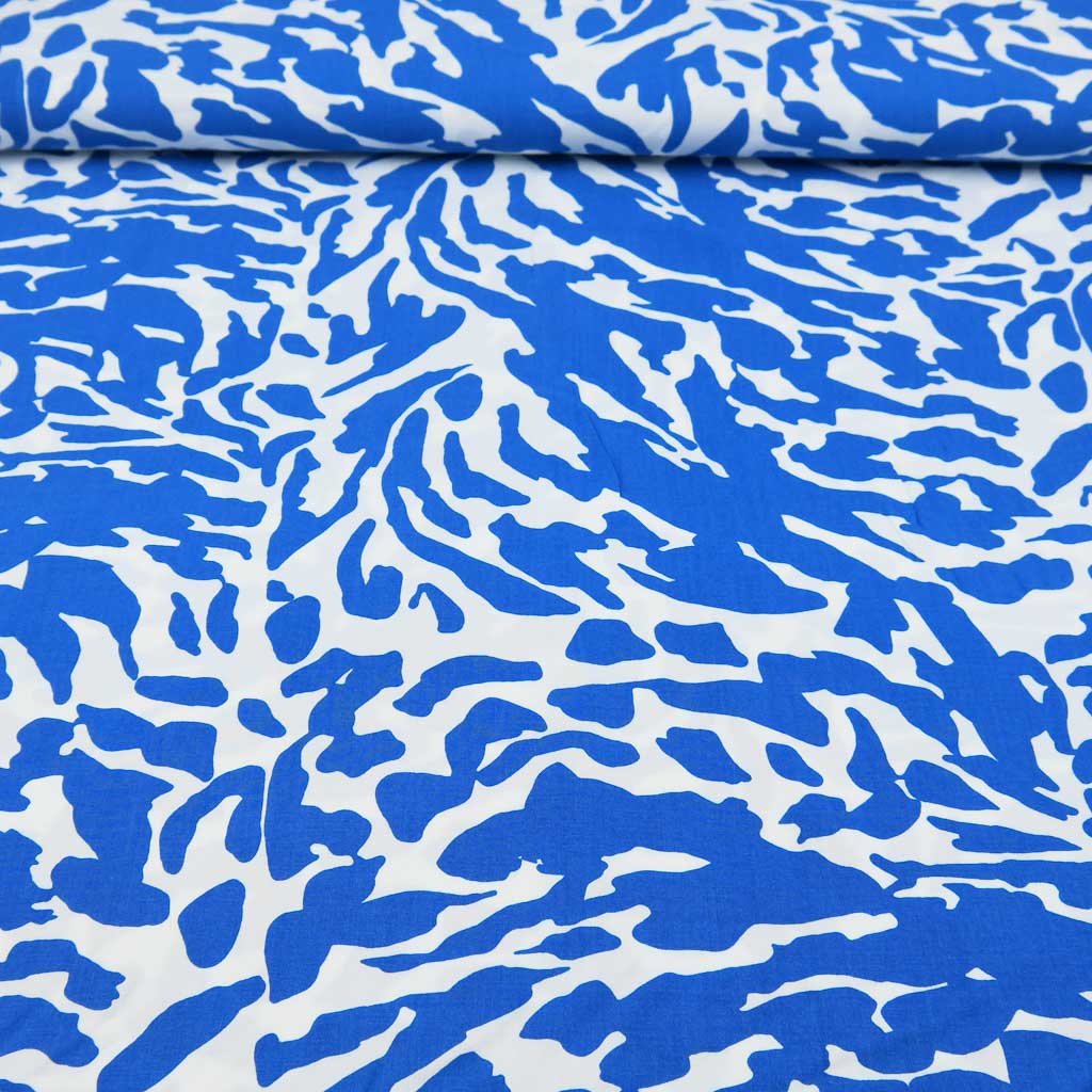 Viskose – Blau/Weiß Grafikmuster, weich fließend