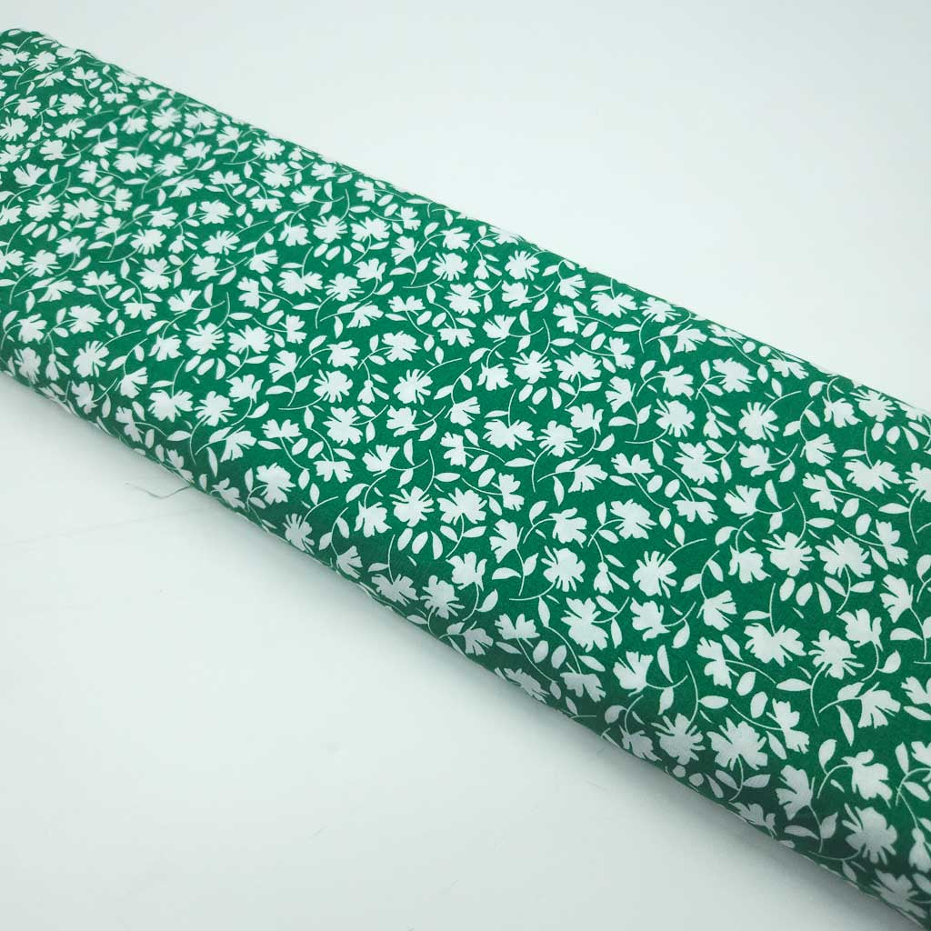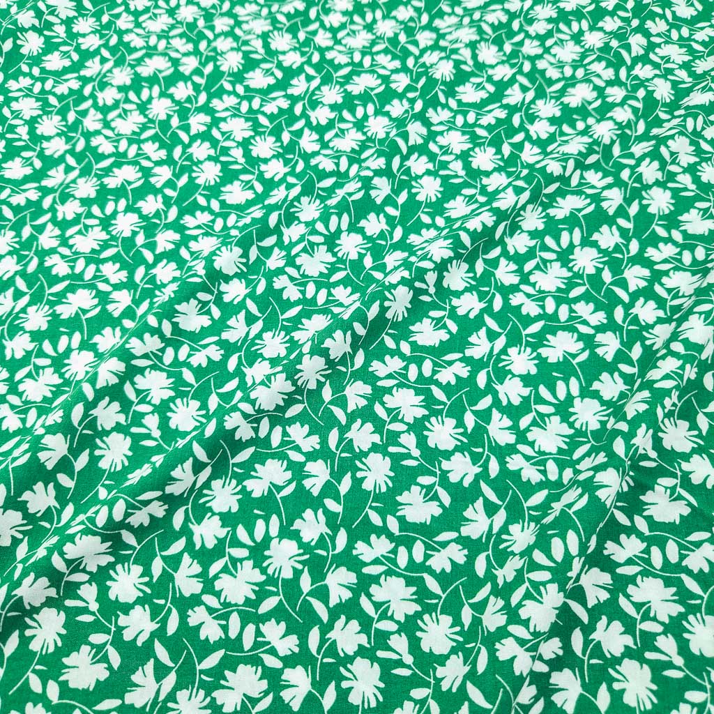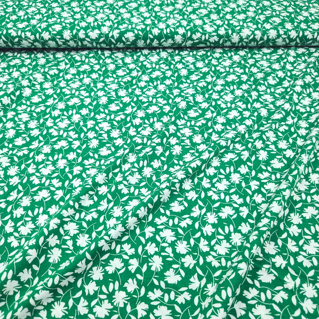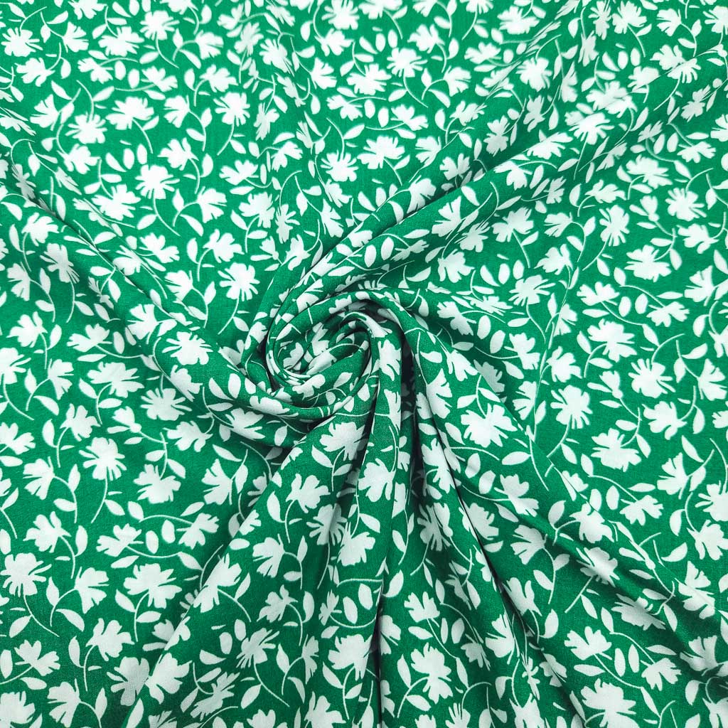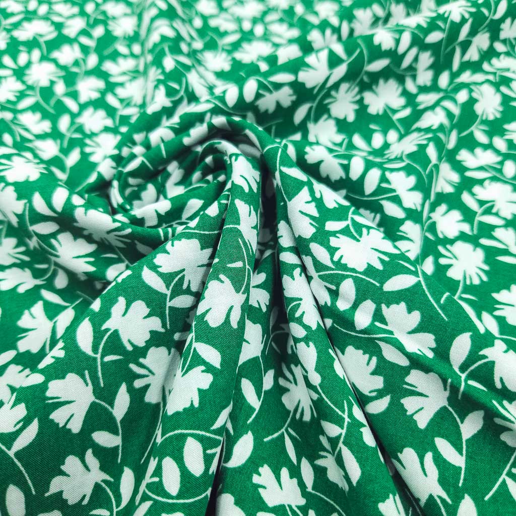 Viskose – Blumen Grün/Weiss – ein leichter, weich fallender Viskose-Stoff, der sich wunderbar auf der Haut anfühlt. Das grüner Grund mit weißen Blumenranken verleiht deinen Nähideen eine besondere Note – ideal für feminine Looks mit viel Bewegung. Dieser Stoff ist Oeko-Tex Standard 100 zertifiziert und damit eine schöne Wahl für dich und deine Liebsten. ✂️💐