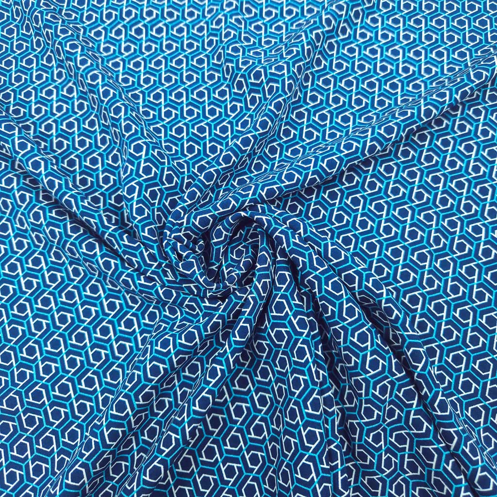 Viskose – Hexagon Petrolblau – ein leichter, weich fallender Viskose-Stoff, der sich wunderbar auf der Haut anfühlt. Das kleine hexagonale Formen in Blau‑Nuancen verleiht deinen Nähideen eine besondere Note – ideal für feminine Looks mit viel Bewegung. Dieser Stoff ist Oeko-Tex Standard 100 zertifiziert und damit eine schöne Wahl für dich und deine Liebsten. ✂️💐