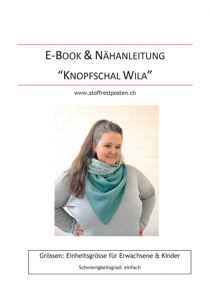 Der „Knopfschal Wila“ ist ein anliegendes Halstuch. Perfekt geeignet für zwei farblich harmonisierende Stoffe, da es beidseitig getragen werden kann. Zu empfehlen sind Stoffe die ein wenig Stand und Stabilität mitbringen oder zumindest einer der beiden Stoffe. Die Stoffe müssen nicht dehnbar sein. Du benötigst einen Stoff mit mindestens 1.45m -1.50m Breite. Je nachdem wie breit die Webkante deines Stoffes ist.