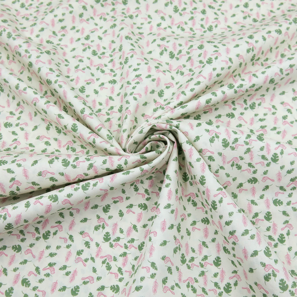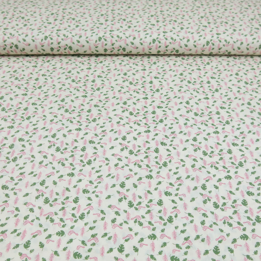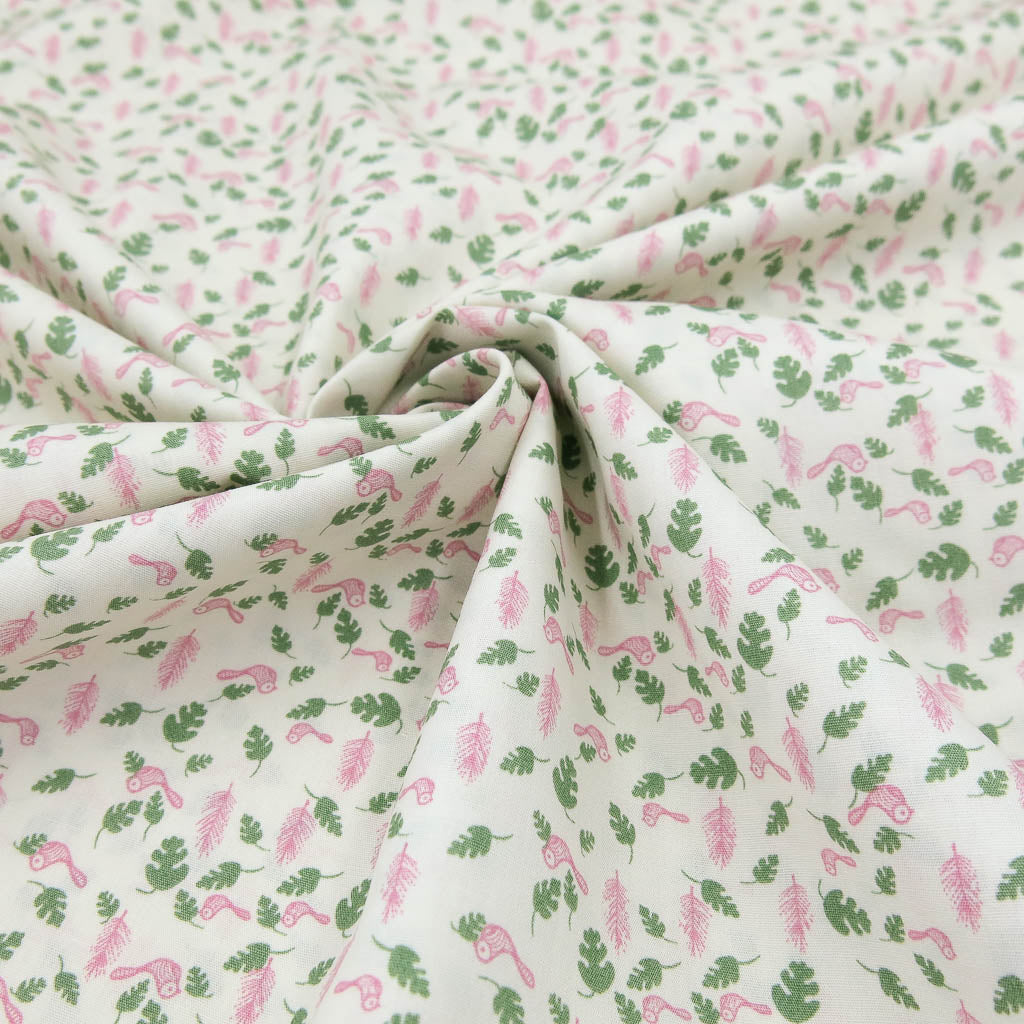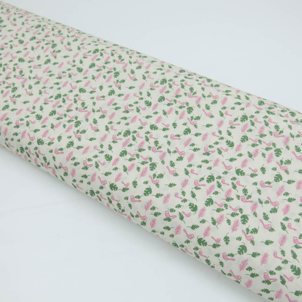 Baumwollstoff - Blätter & Vögelchen auf Beige