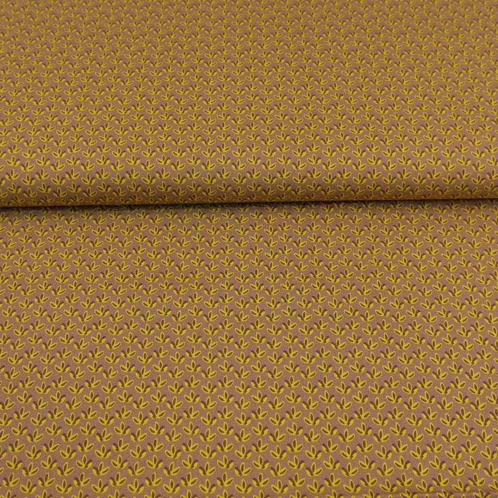 Baumwollstoff Popeline - Blätter auf Hellbraun