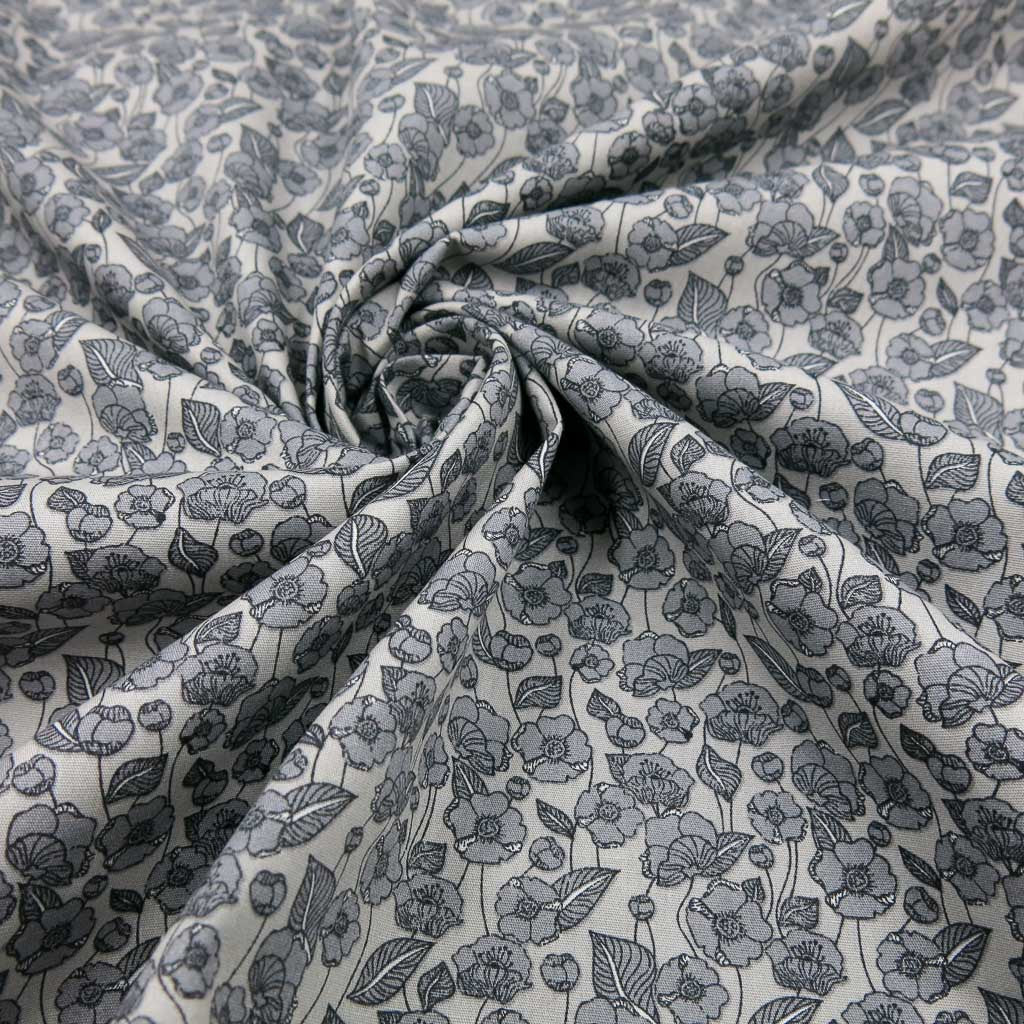 Mit unserem Baumwollstoff Popeline - Blumen in Grau holst du dir einen hochwertigen Stoff für deine Nähideen. Der Stoff ist Oeko-Tex Standard 100 zertifiziert, angenehm auf der Haut und überzeugt durch seine schöne Optik und Qualität. 🌸🧵