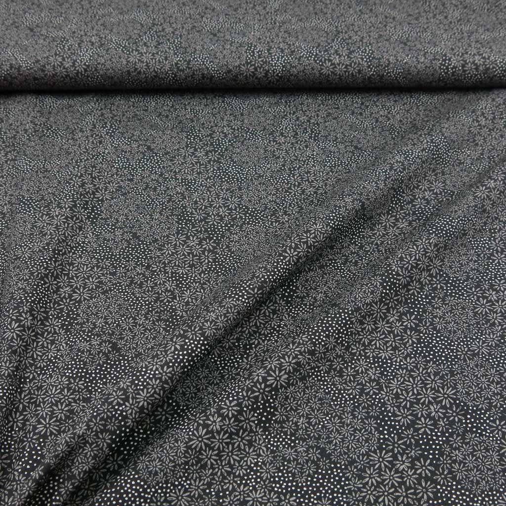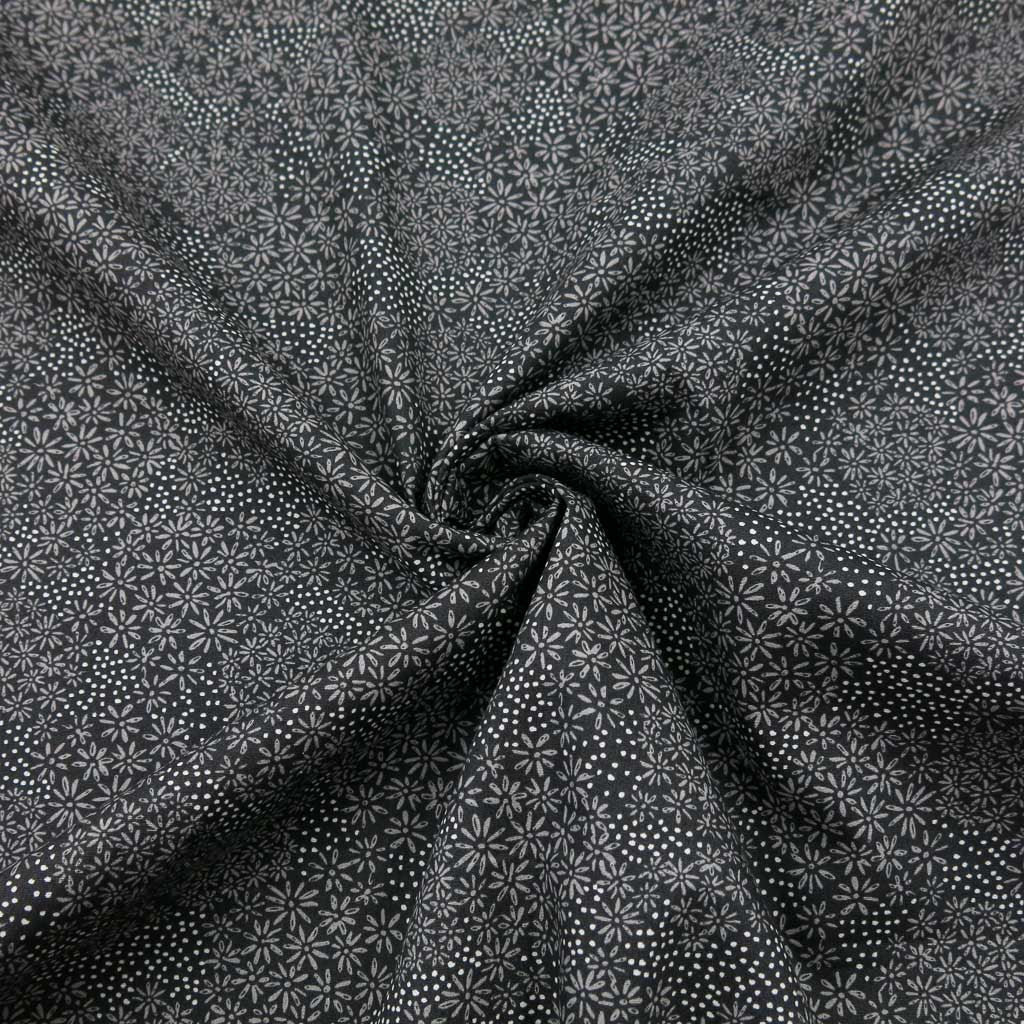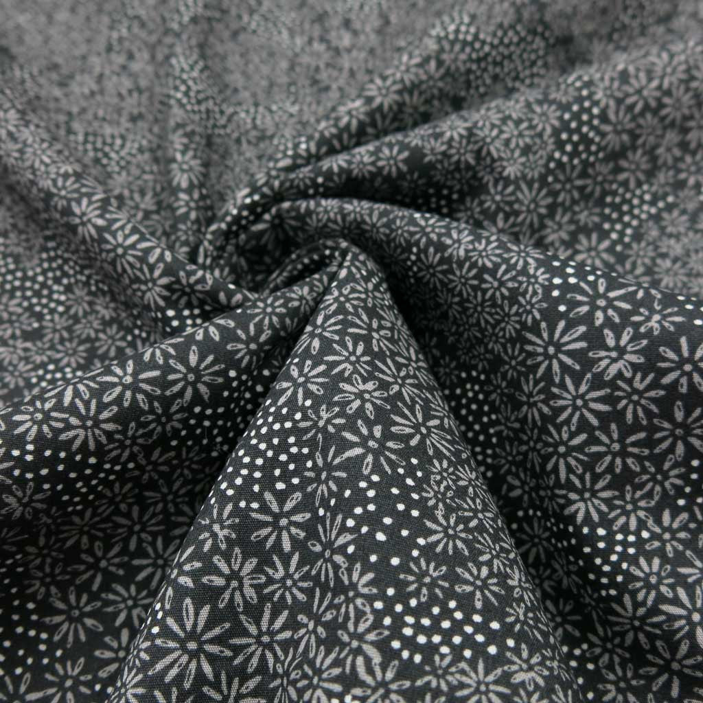 Baumwollstoff Popeline - Feine Blümchen auf Schwarz