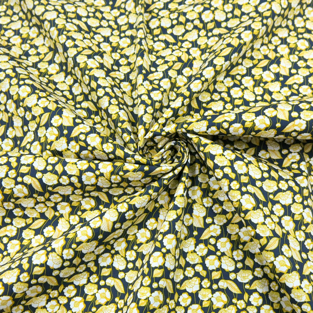 Baumwollstoff Popeline - Gelbe Blumen auf Petrol überzeugt mit fein gewebter Popeline-Struktur und klaren Farben. Hautsympathisch, pflegeleicht und Oeko‑Tex Standard 100 zertifiziert – bereit für deine Ideen! ✂️🌟