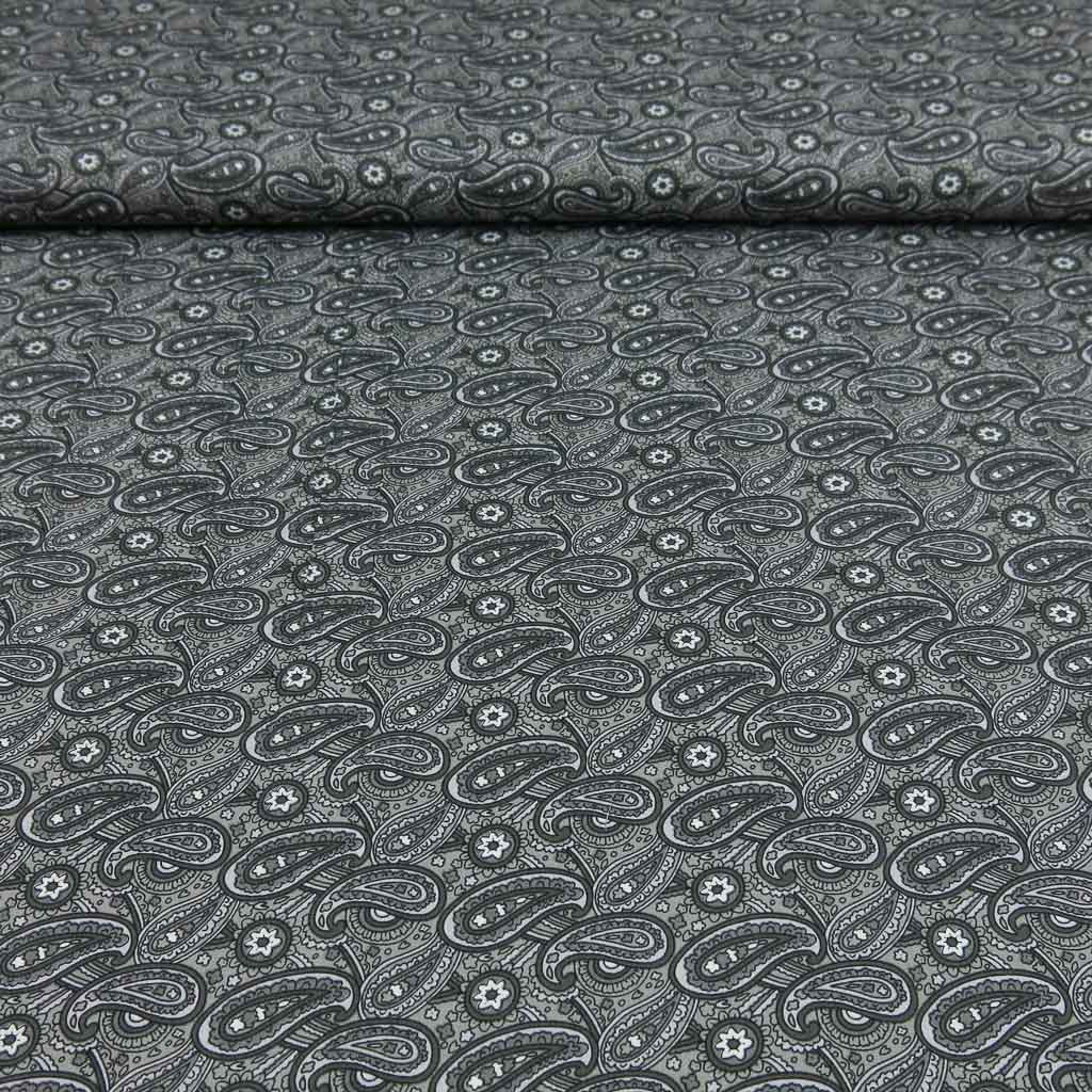 Baumwollstoff Popeline - Paisley in Anthrazit – feine, dicht gewebte Popeline für dein nächstes Projekt. Der Stoff ist Oeko‑Tex Standard 100 zertifiziert, angenehm auf der Haut und lässt sich wunderbar verarbeiten. ✂️🧵✨