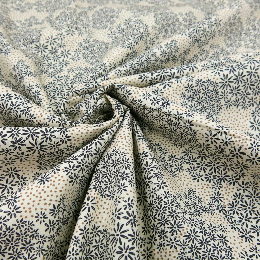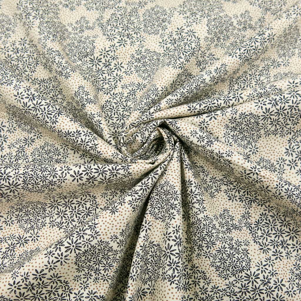 Baumwollstoff - Schwarz kleine Blümchen auf Beige – Popeline Druck für dein nächstes Projekt. Angenehm zu verarbeiten und formstabil – genau richtig, wenn es schön und praktisch werden soll. 🌸✂️🧵